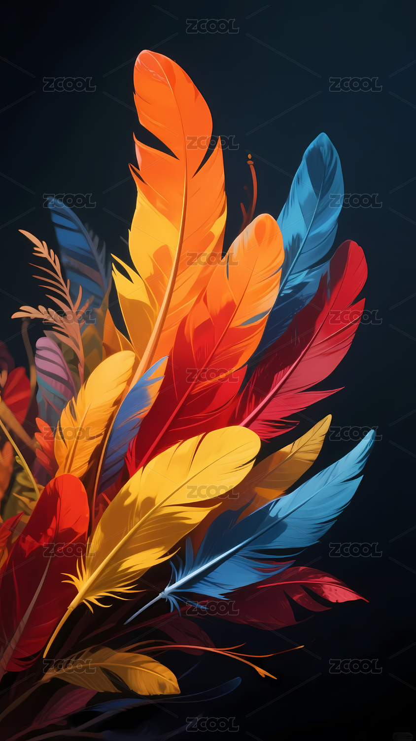 数码水彩蓝绿色羽毛印花抽象图形海报背景