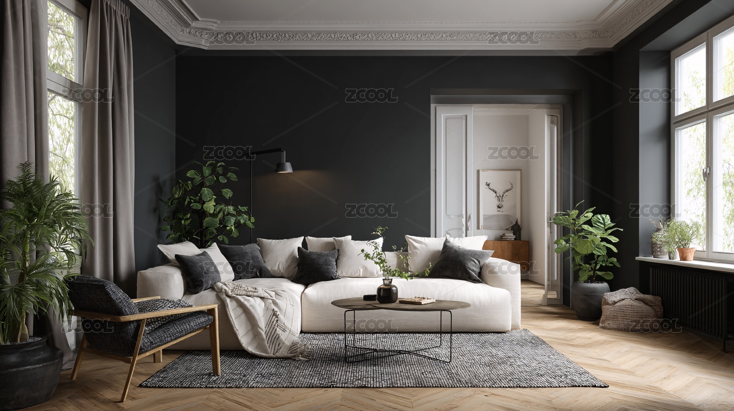深色调现代风客厅室内场景