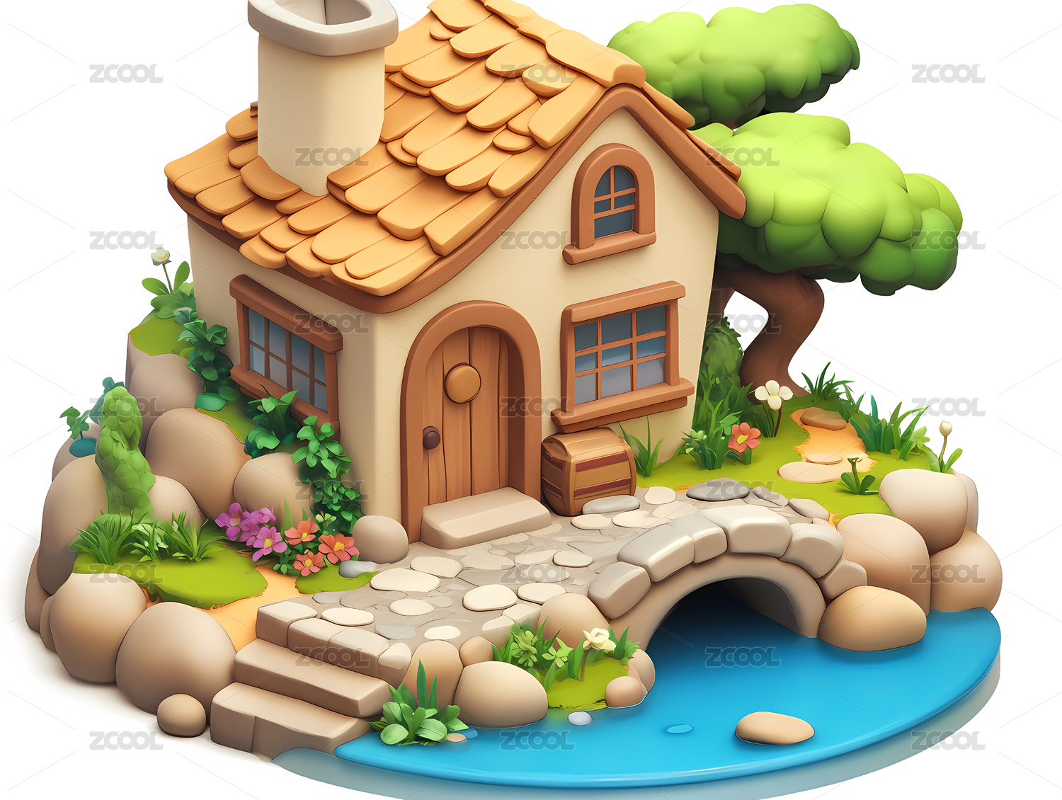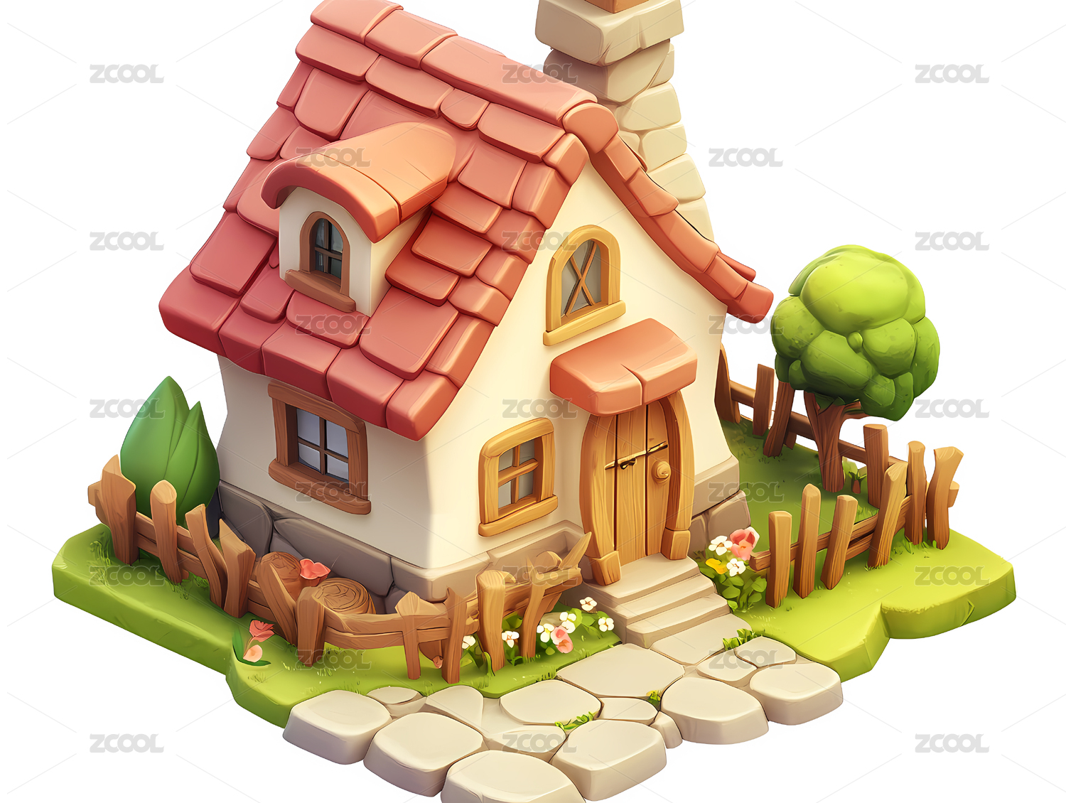 设计,创意,装饰,插画,审美,可爱,建筑,粉色,花园,小屋