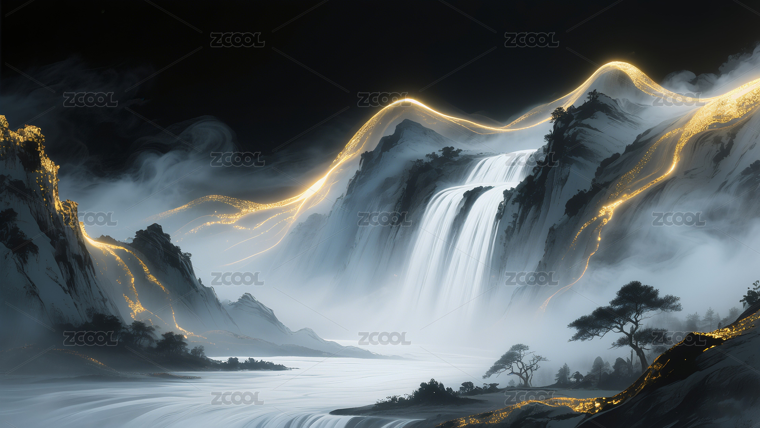 电商,背景,海报,艺术,山水画,新中式,流体,水墨,泼墨,烟雾