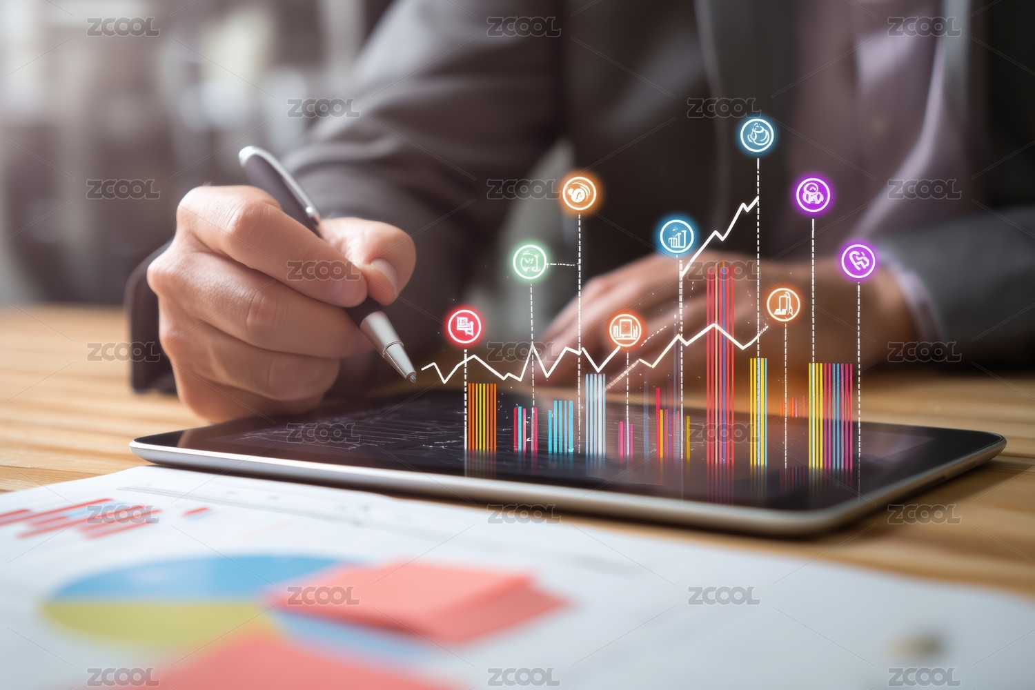 手握触控笔分析数据图表
