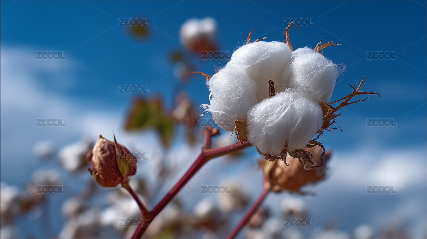 棉花,花朵,绽放,天空,蓝色,棉球,白色,种子,豆荚,棕色