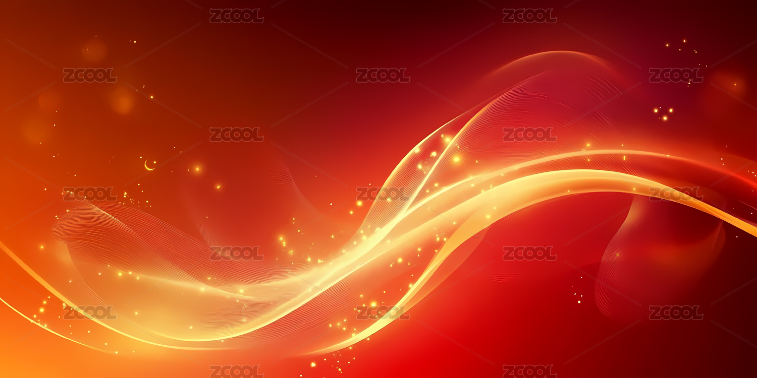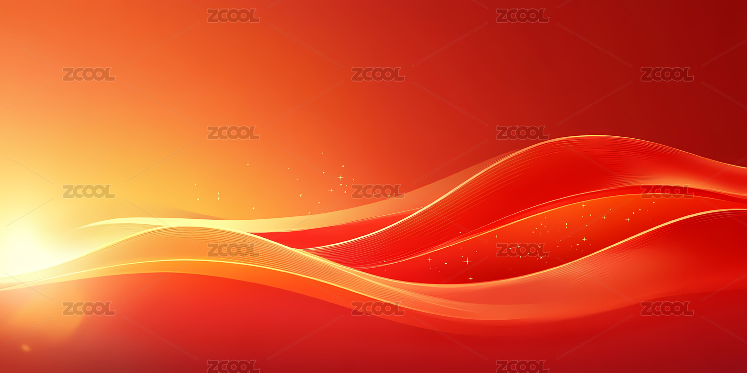 红色波浪与光芒交织的抽象背景
