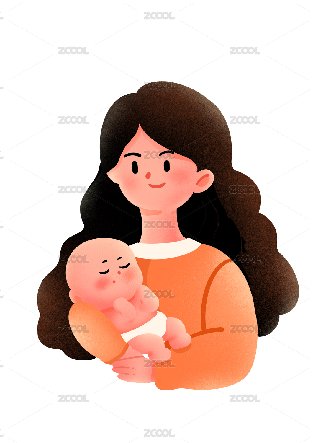 卡通手绘母亲抱着睡着的孩子