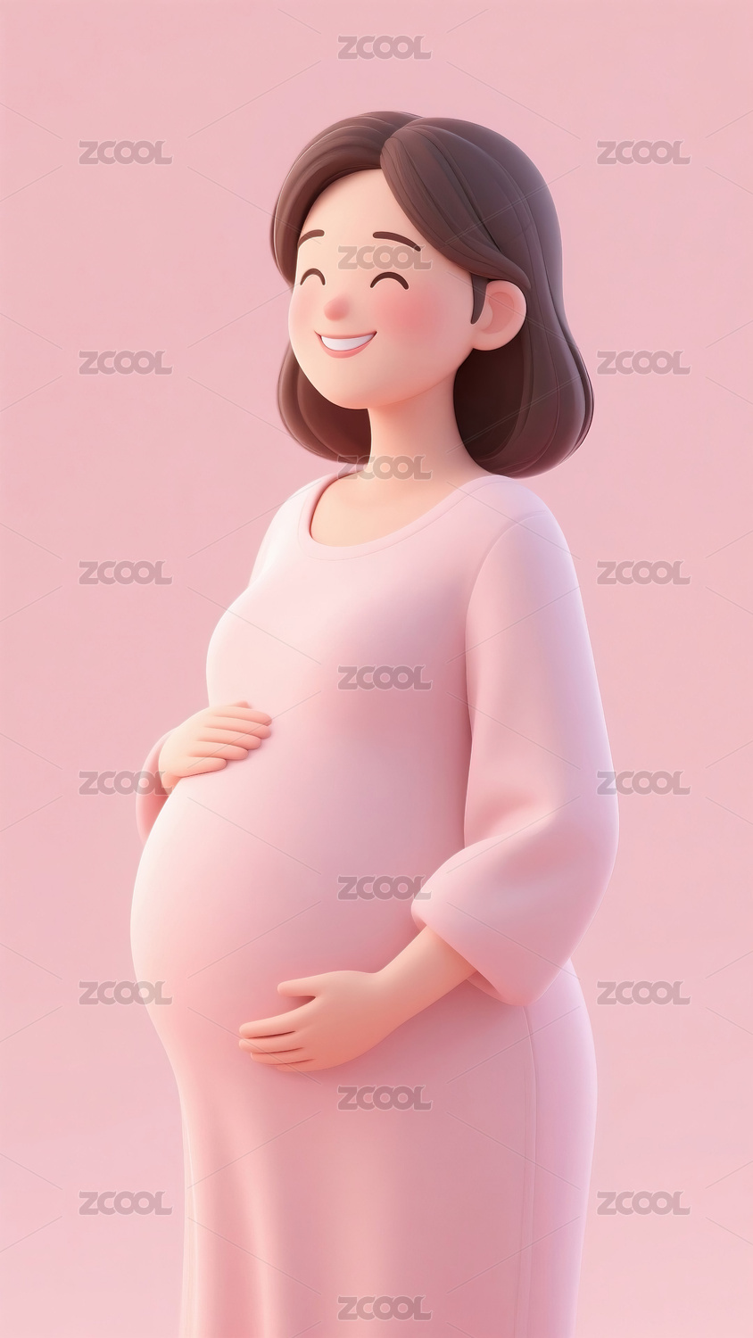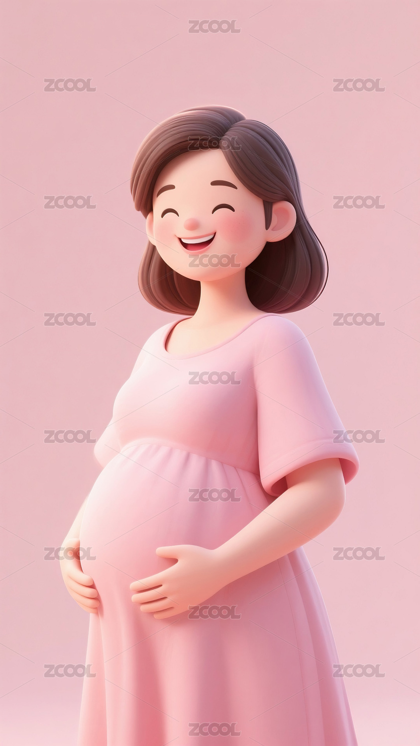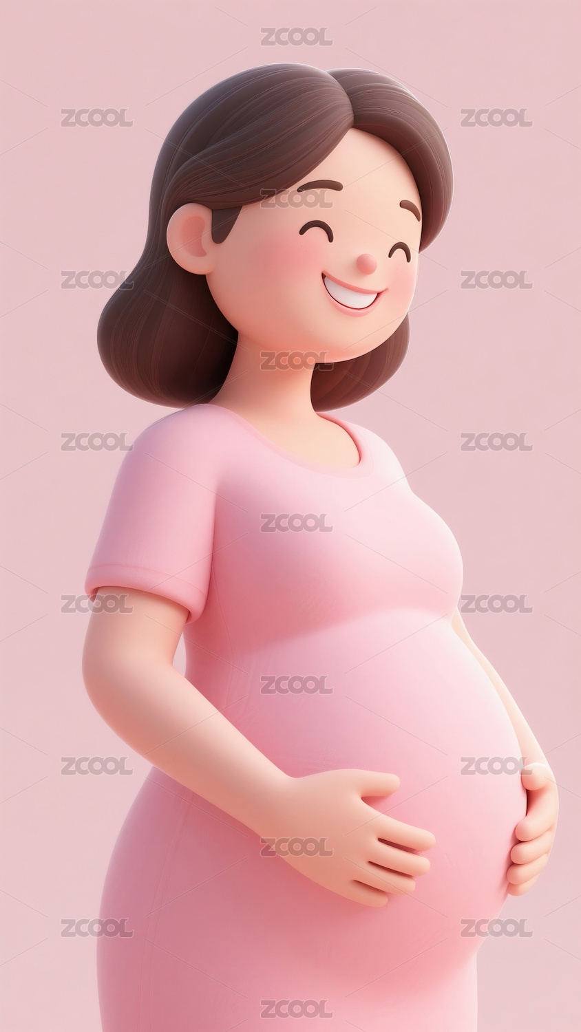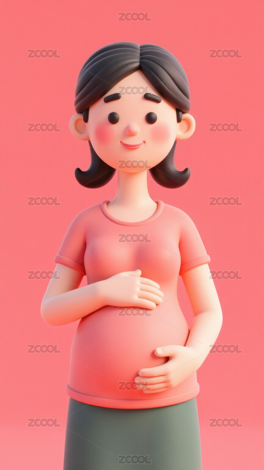 孕妇,可爱,卡通,3D,微笑,粉色,手,肚子,插画,孕妇照