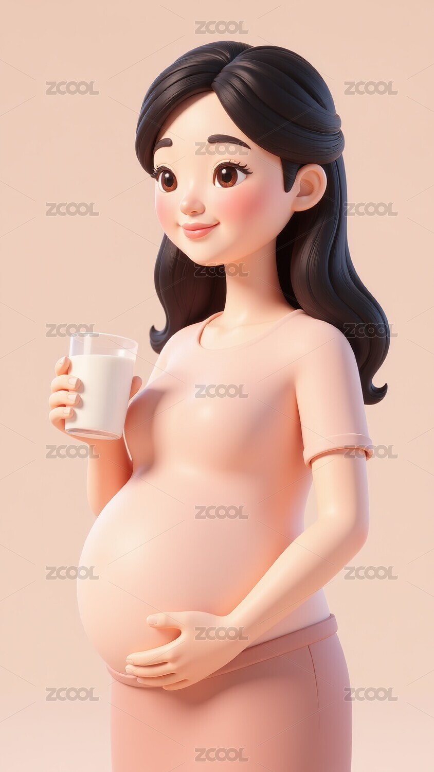 3D孕妇喝牛奶