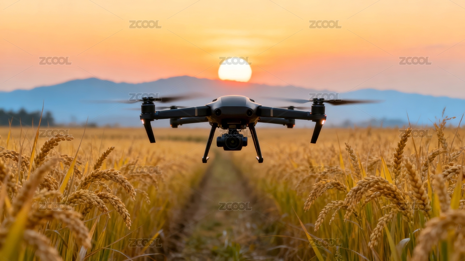 无人机农田日落