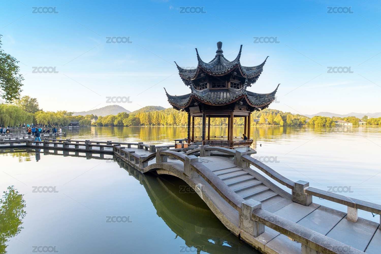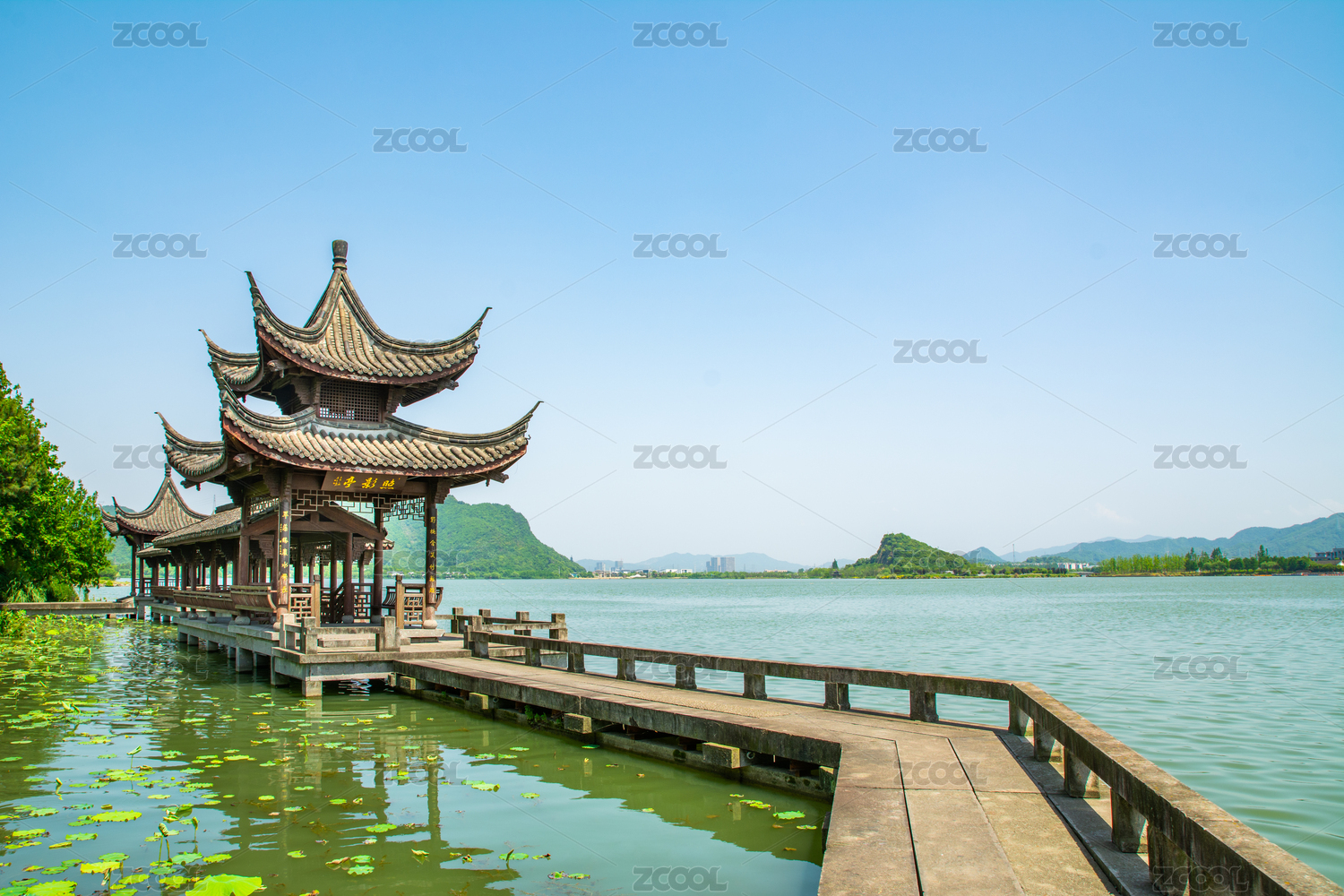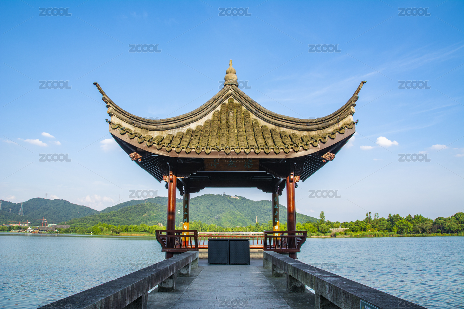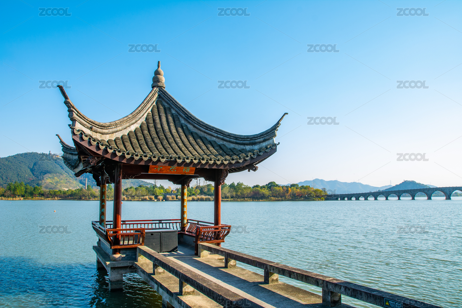 中国浙江杭州萧山湘湖旅游度假区水上古亭