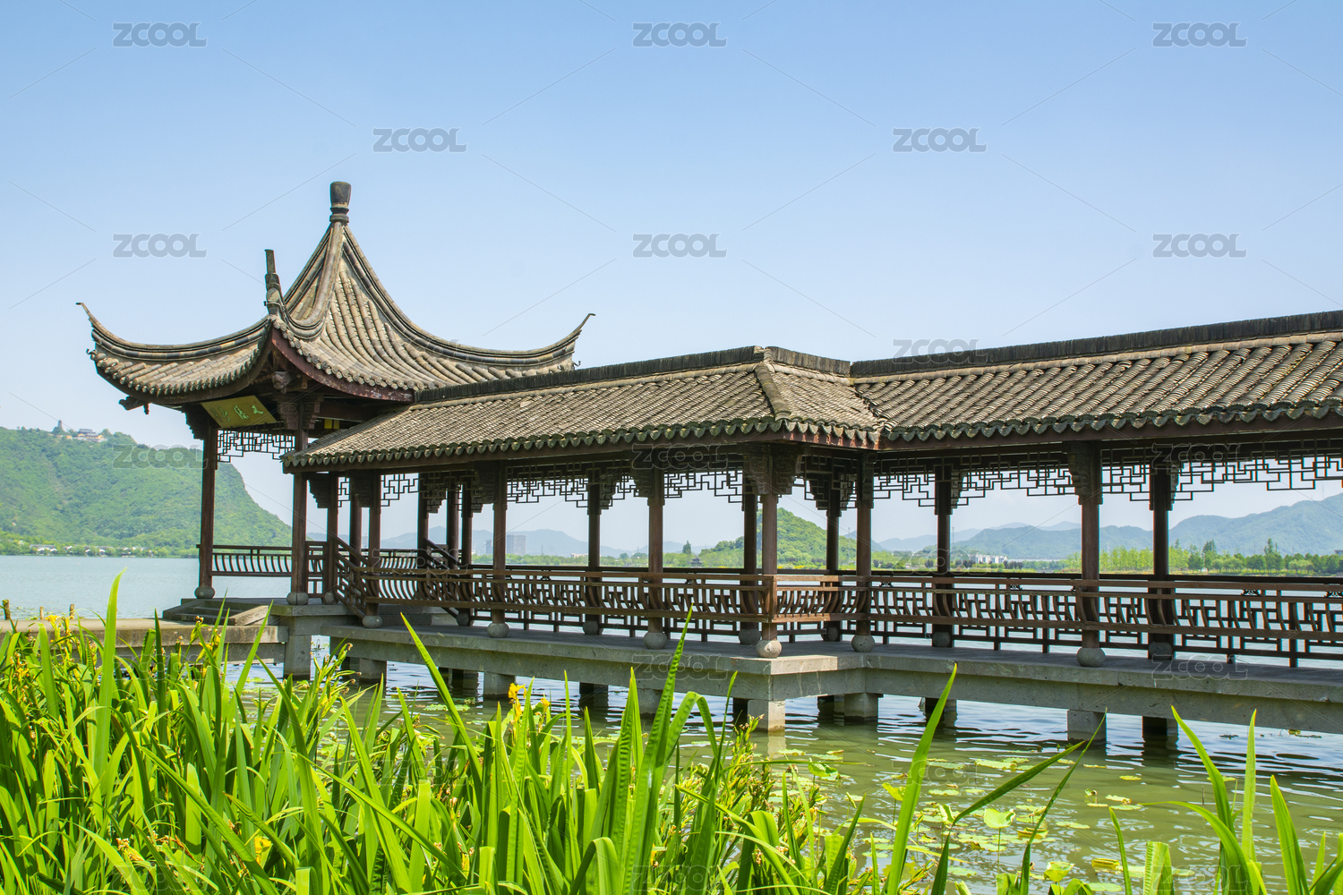 中国浙江萧山湘湖旅游度假区古建筑长廊
