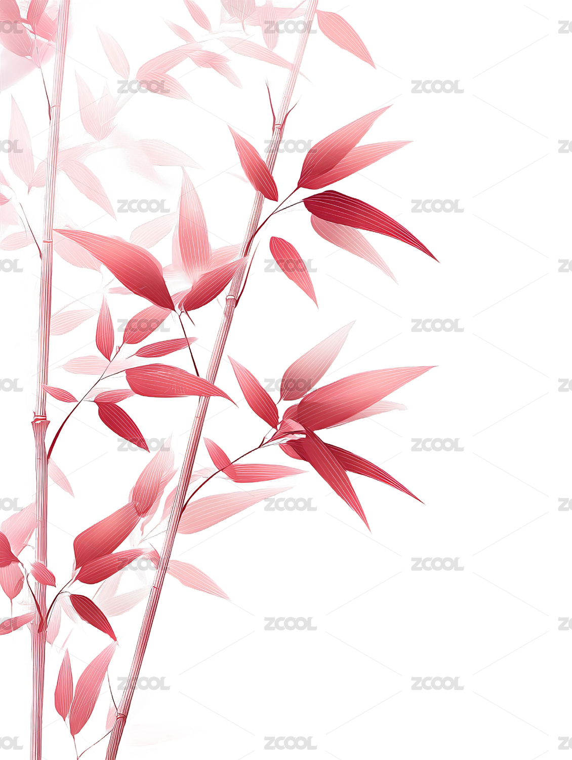 粉色竹叶在白色背景上的优雅展示