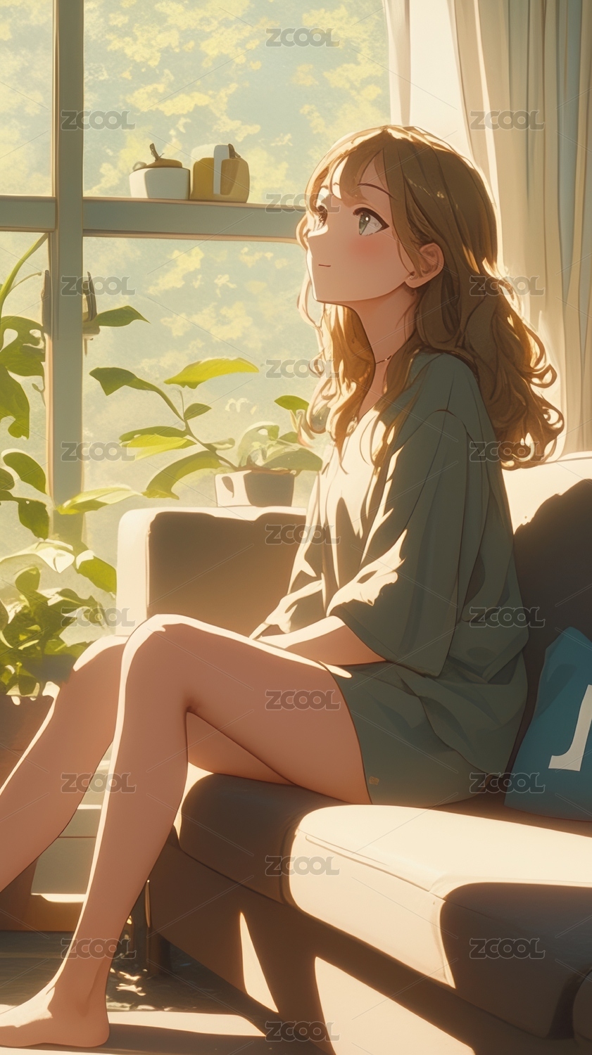 猫咪,插画,卡通,可爱,少女,长发,自然,户外,建筑,温馨