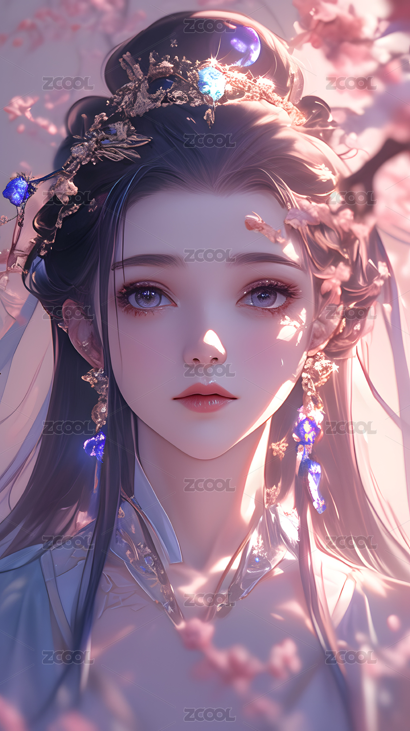 插画,传统,背景,艺术,长发,服饰,自然,光影,梦幻,色彩