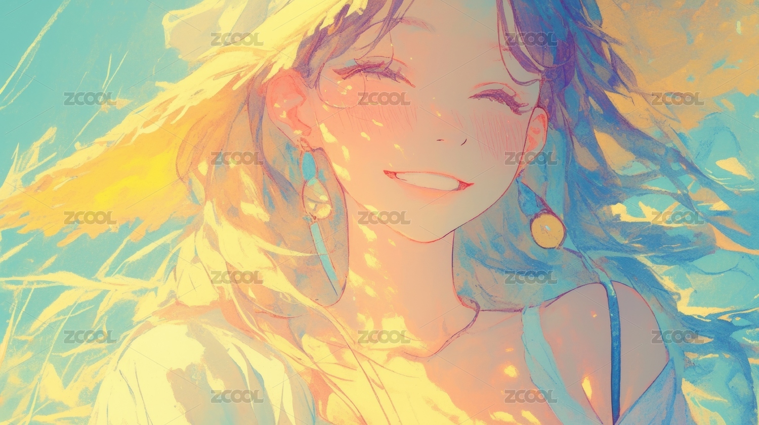 夏日微风中的动漫卡通女孩