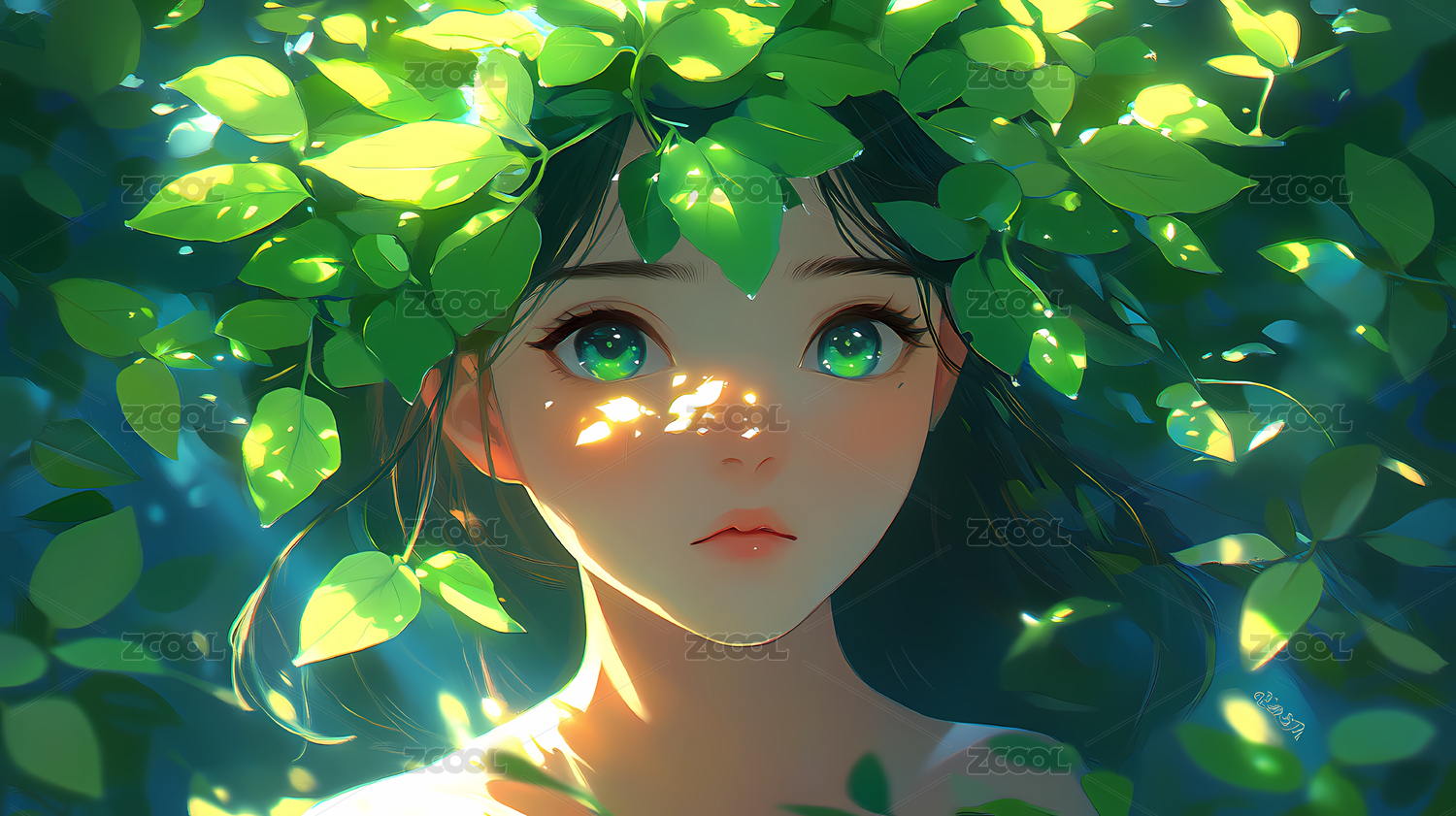 绿叶环绕少女头像