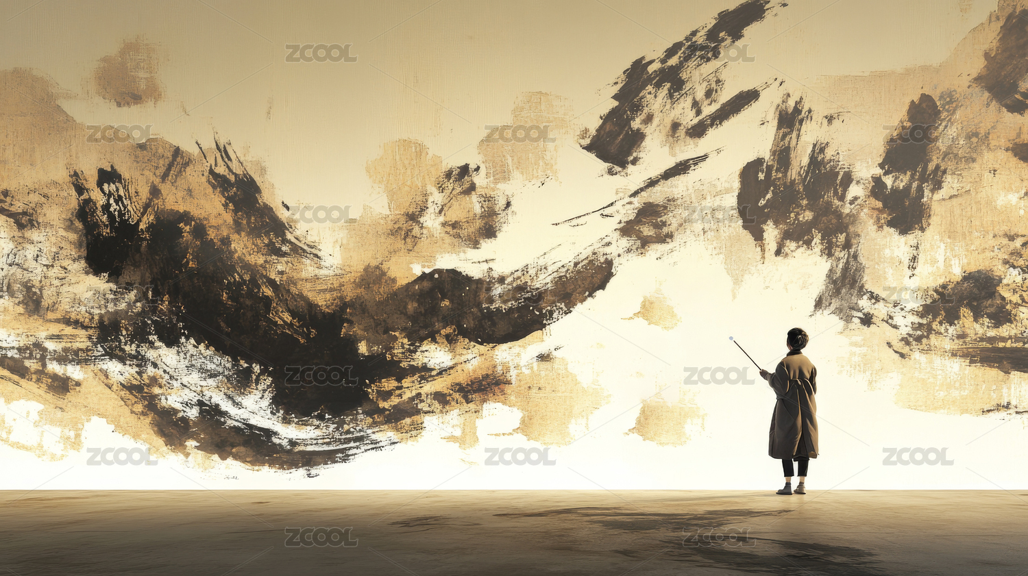 水墨,艺术,人物,互动,场景,插画,装饰,设计,素材,意境