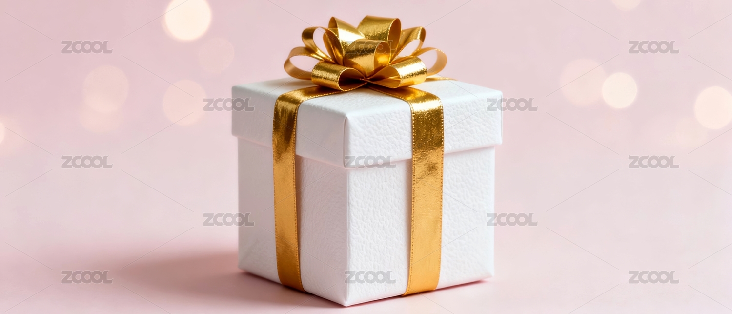 白色礼盒配金色丝带