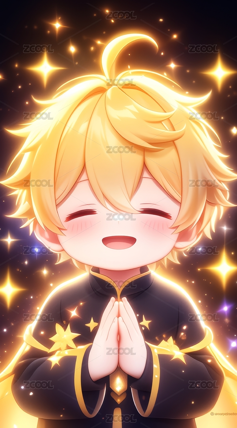 光芒,金色,星光,蓝色,治愈,梦幻,可爱,卡通,插画,背景