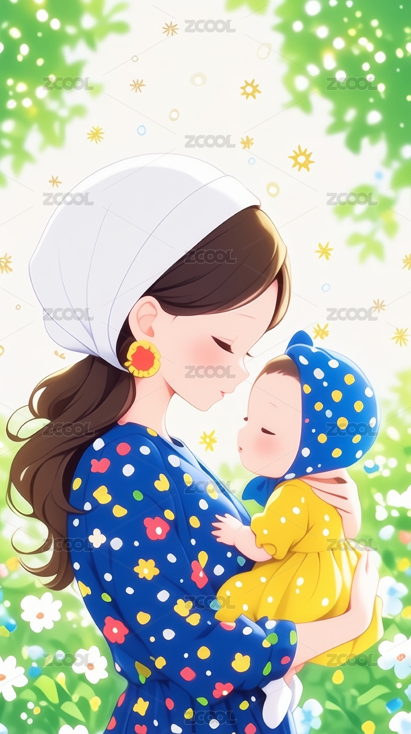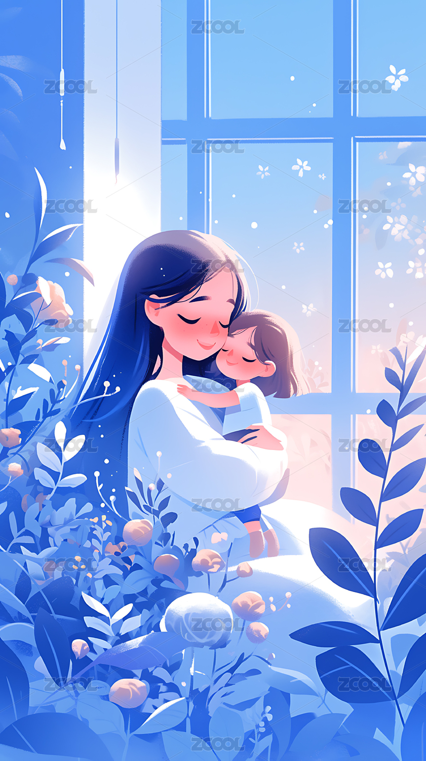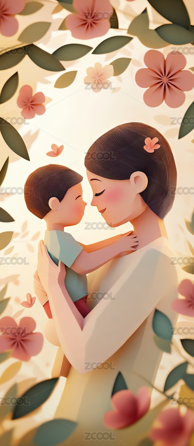 母亲节妈妈抱着萌娃竖版插画矢量图