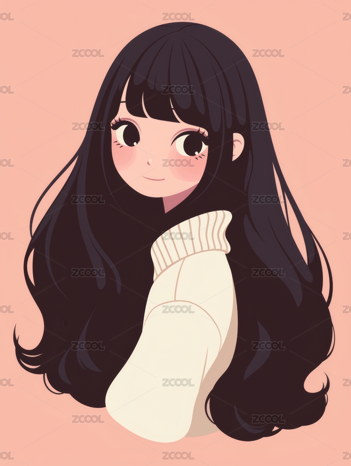 少女长发温柔浅色系插画