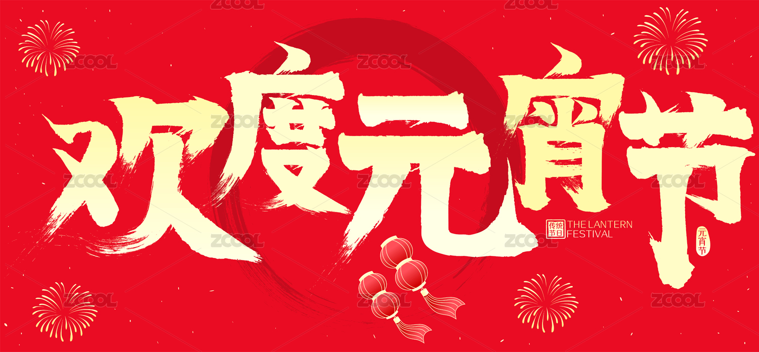 欢度元宵节喜庆水墨灯笼烟花矢量书法字