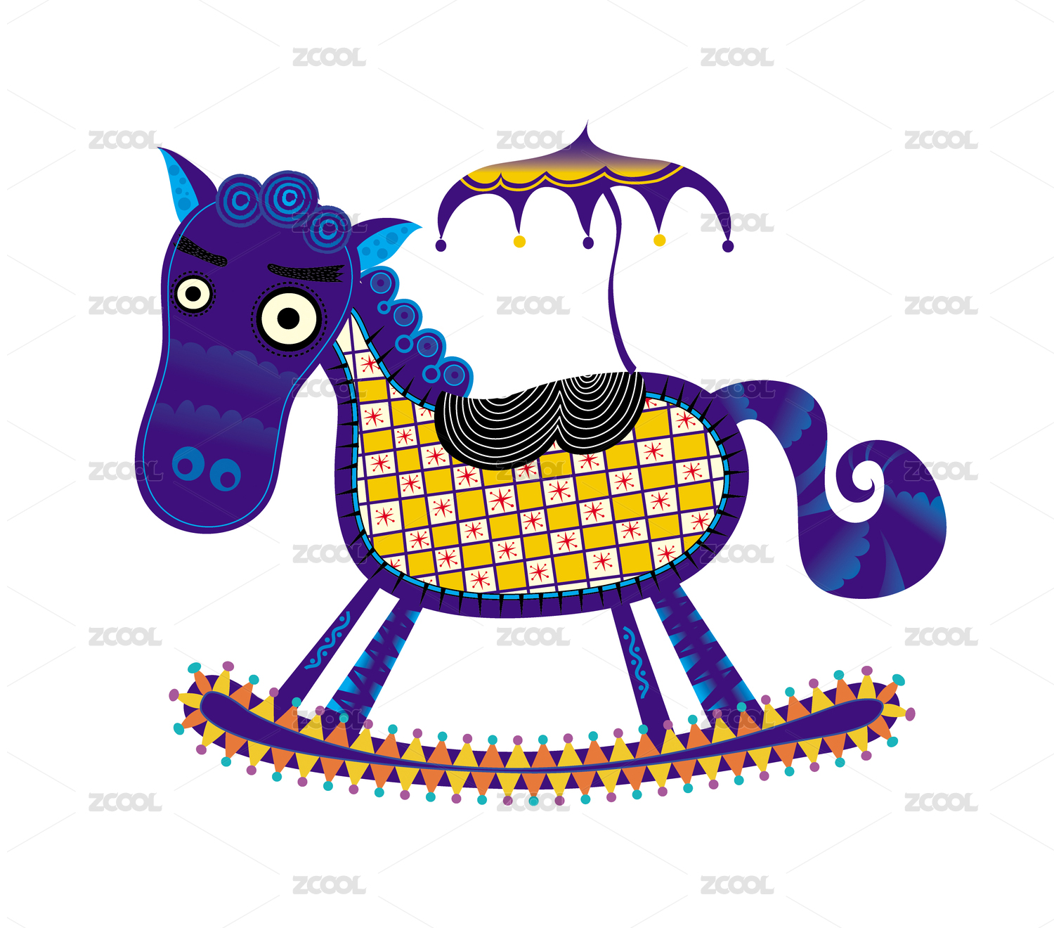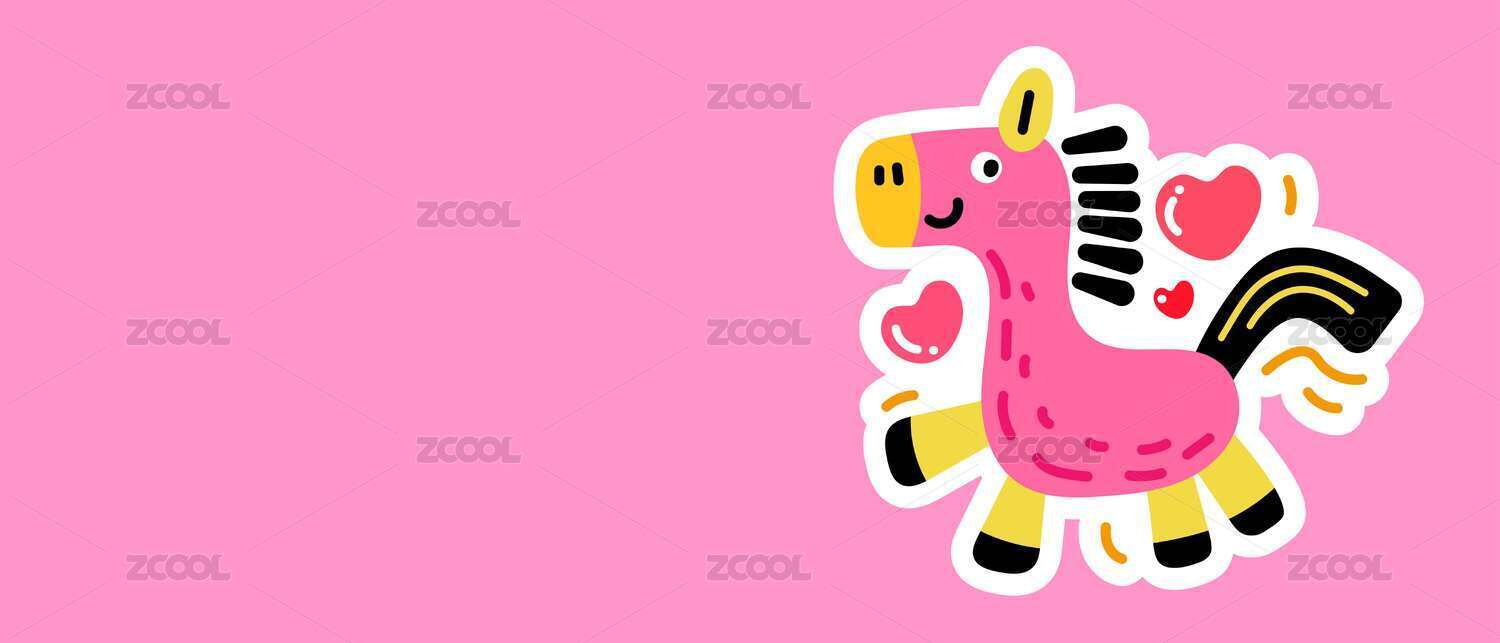 多巴胺活力色系弧形色块马插画