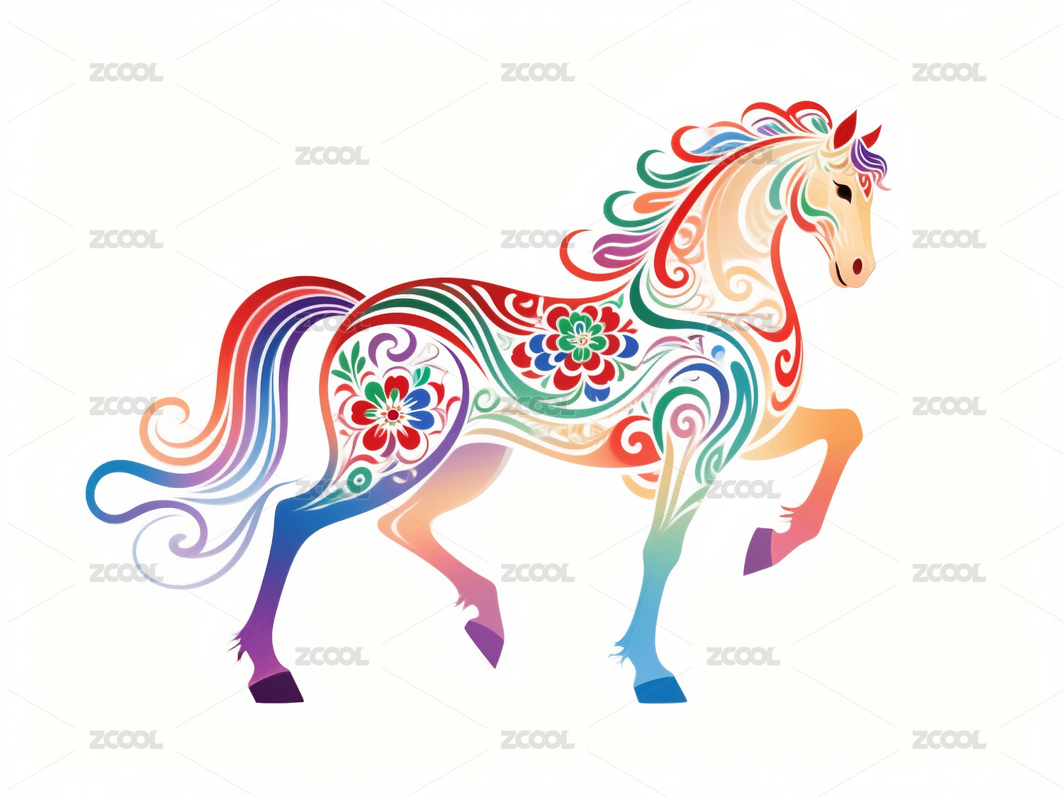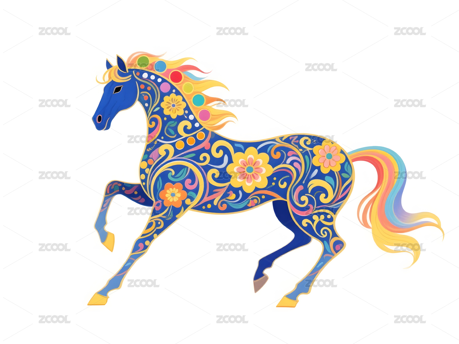 彩色装饰艺术马奔跑姿态马年