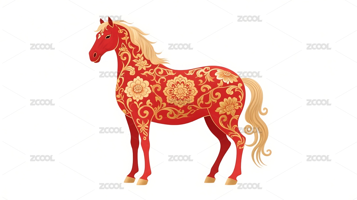 红白色花卉图案马的插画