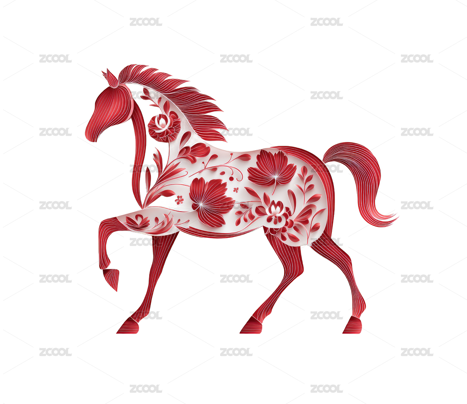 红色剪纸花卉装饰马