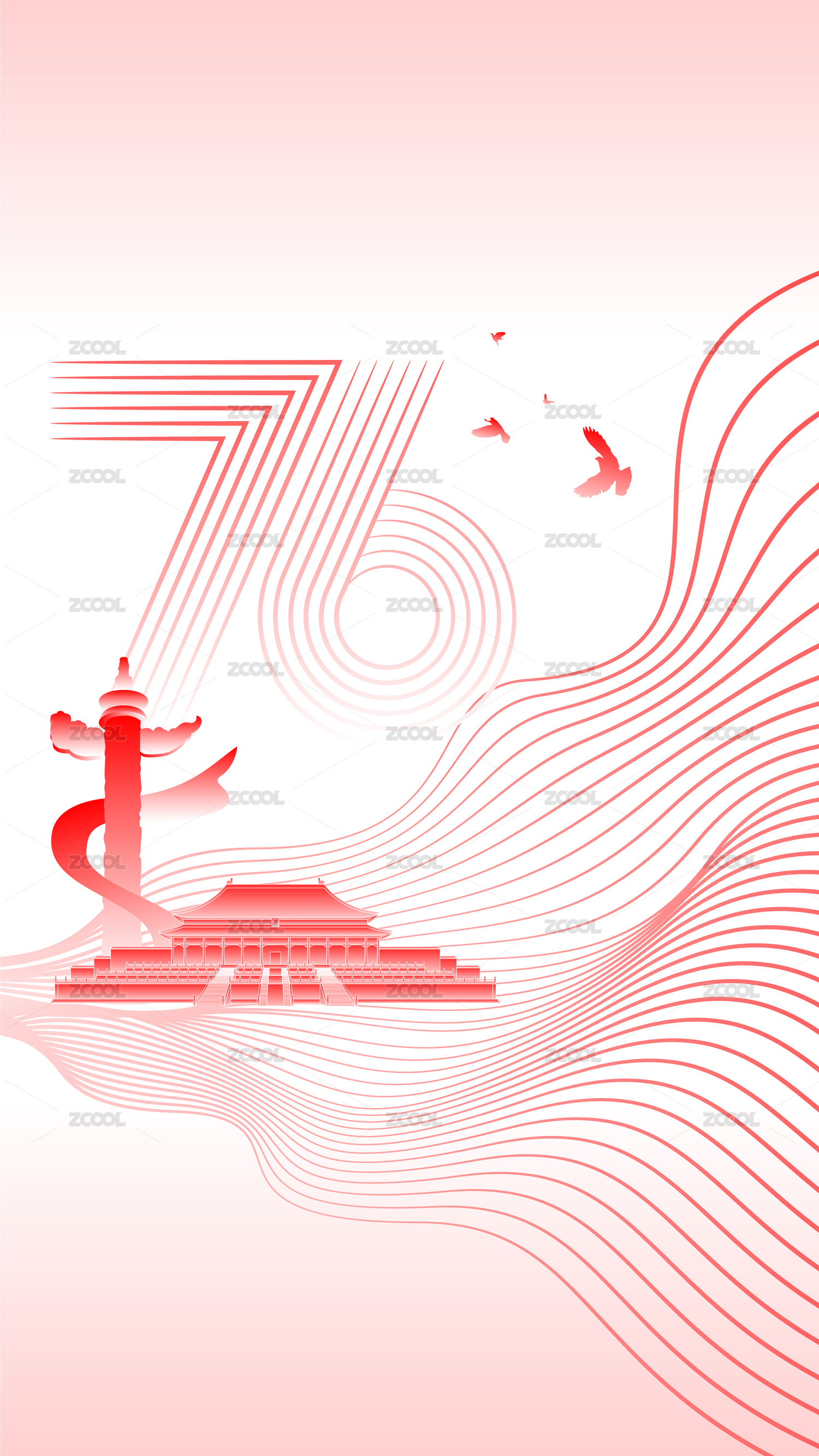 国庆节,海报,促销,活动,祝福,旅游,国庆,插画,红绸,76