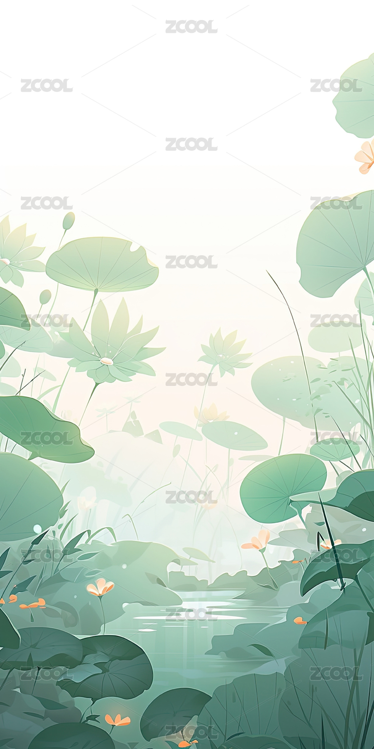 荷花荷叶池塘中国风插画