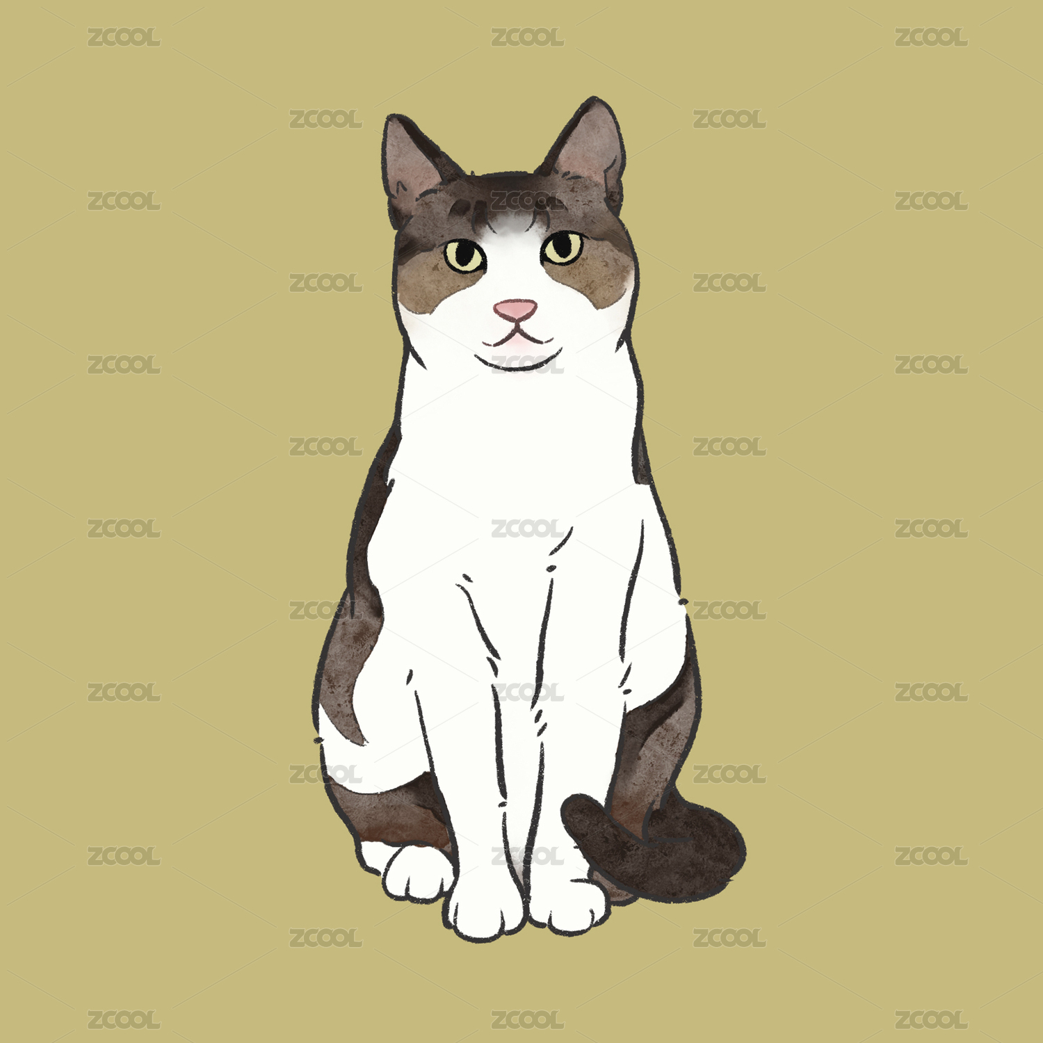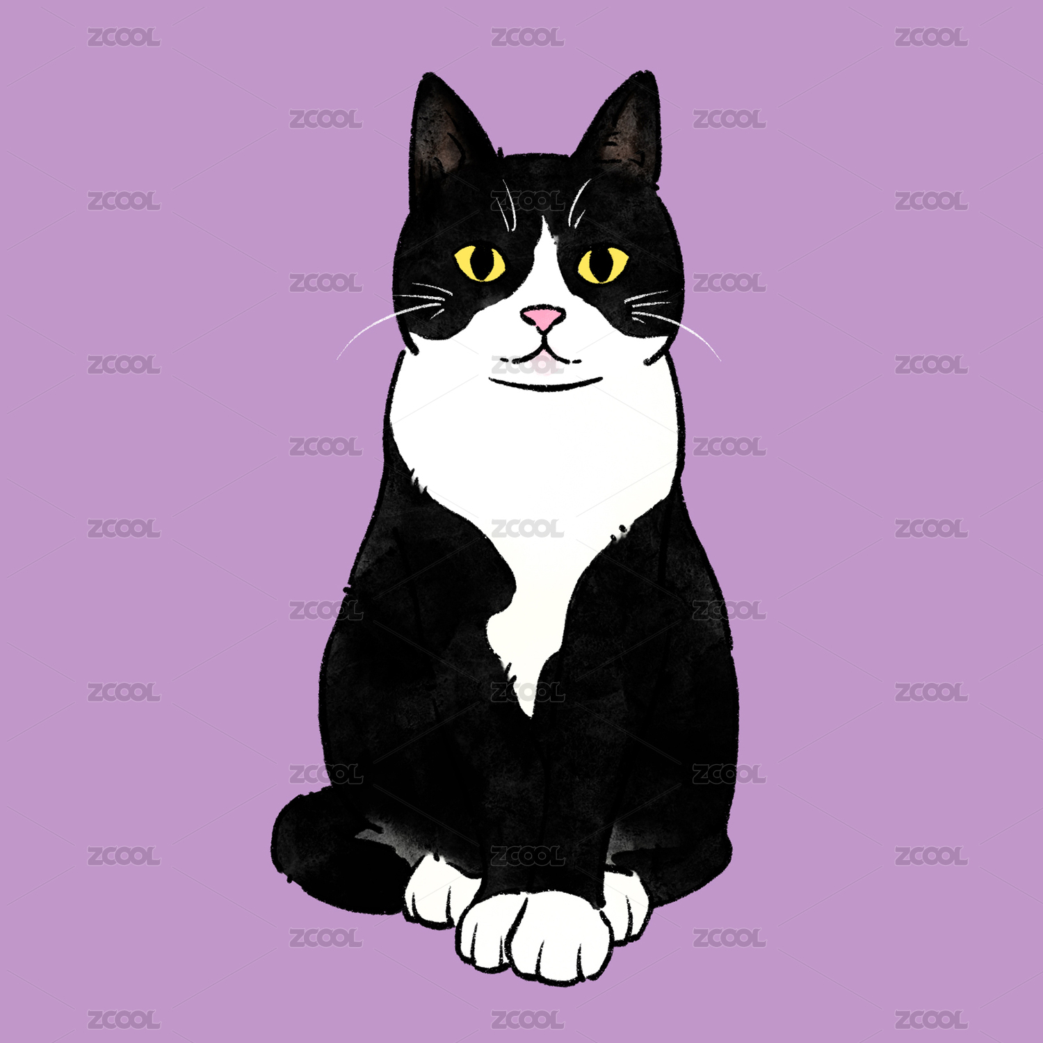 猫猫插画奶牛猫黑白猫