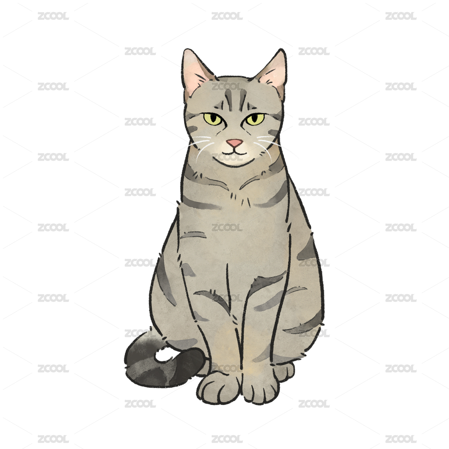 猫猫插画美国短毛猫棕色标准虎斑猫
