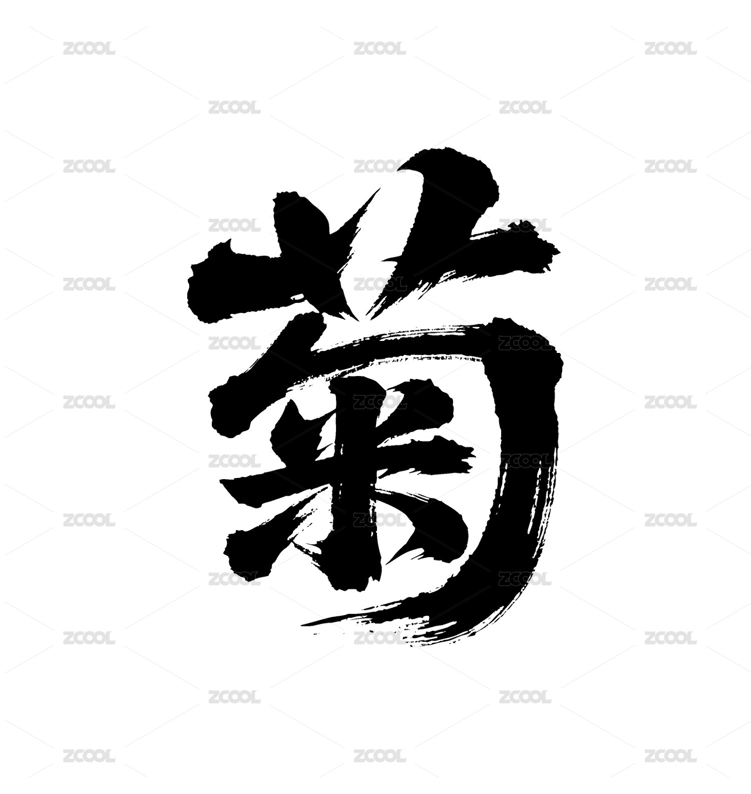 菊矢量书法手写毛笔字