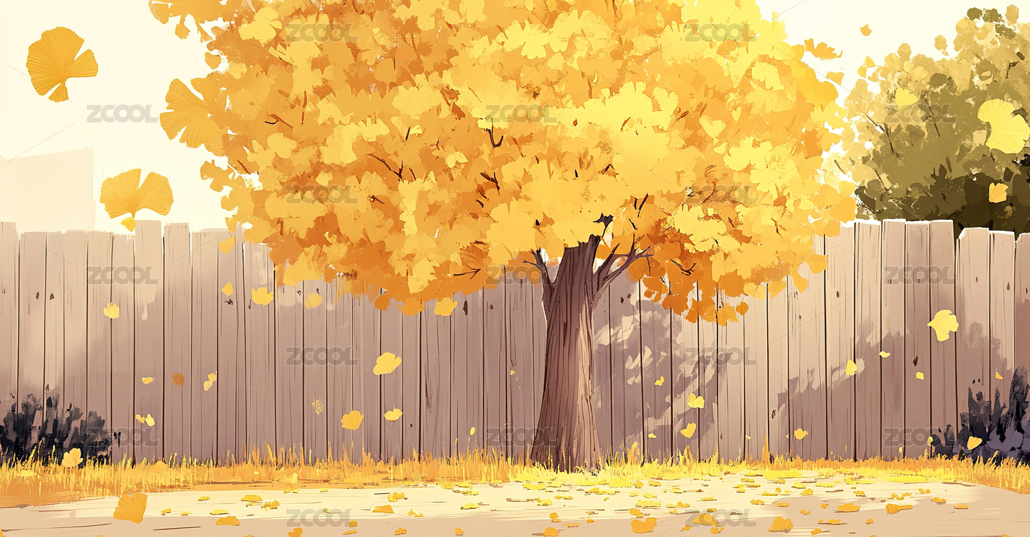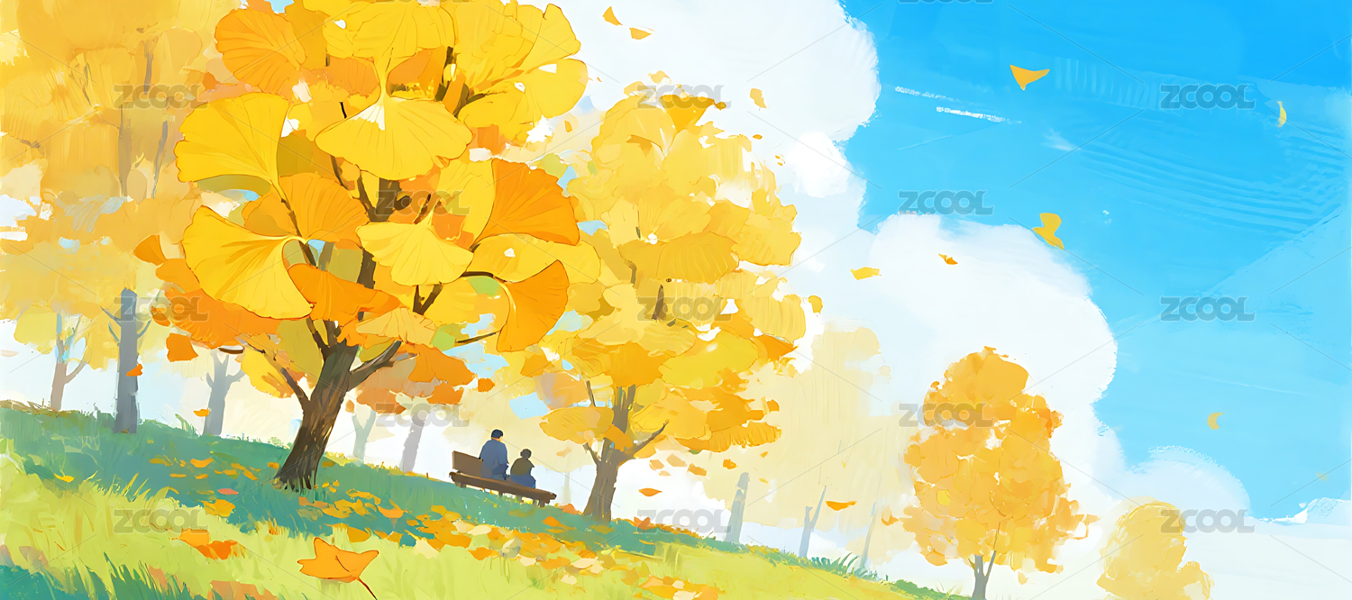 秋天,插画,背景,壁纸,风景,扁平风格,立秋,质感,树林,森林