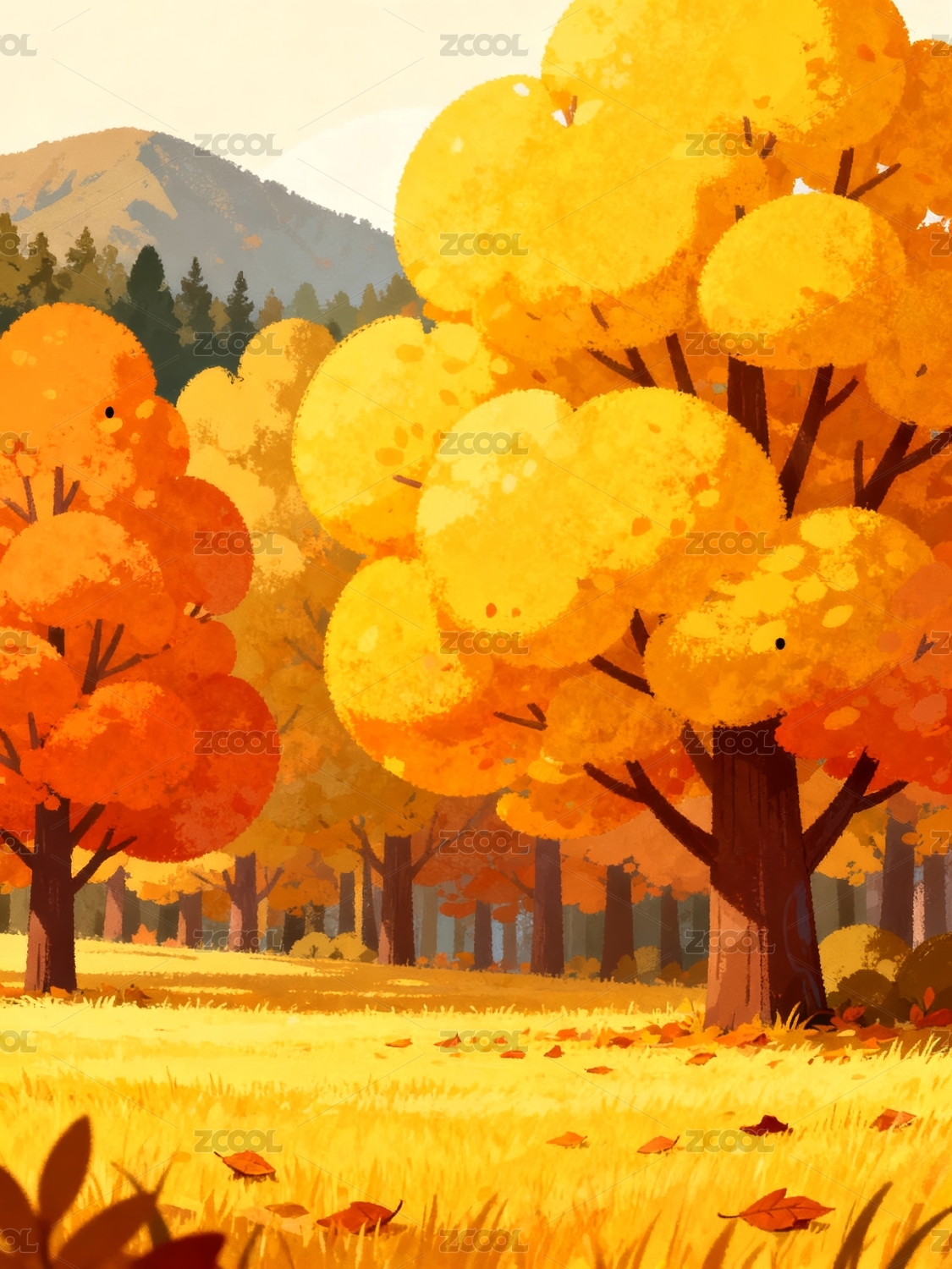 秋天,插画,背景,壁纸,扁平风格,立秋,质感,树林,森林,草地