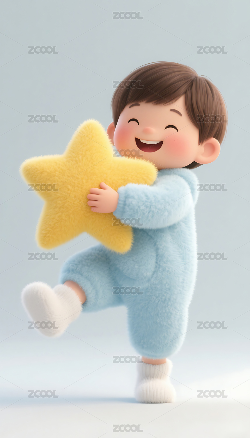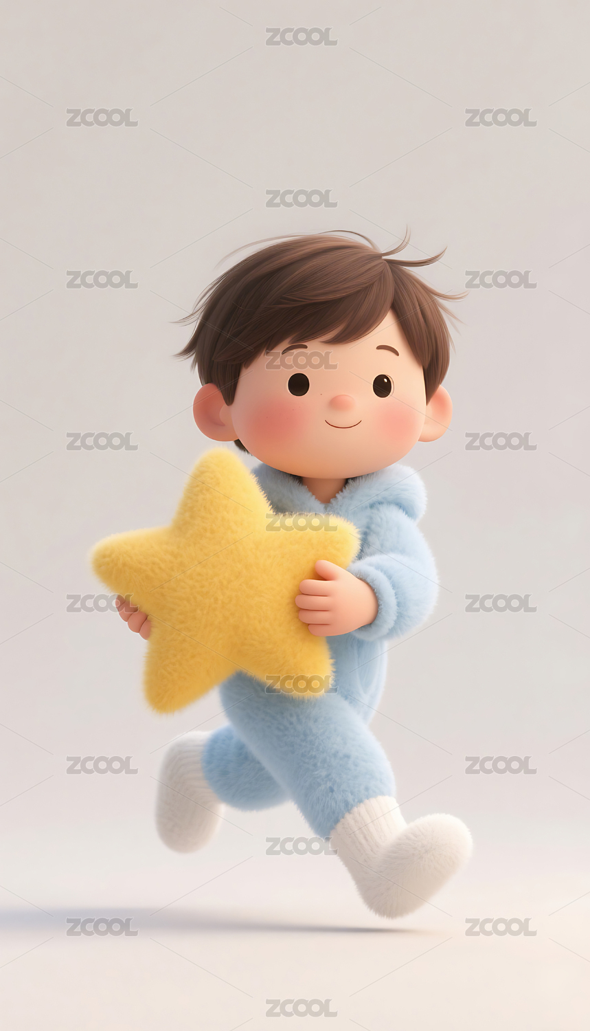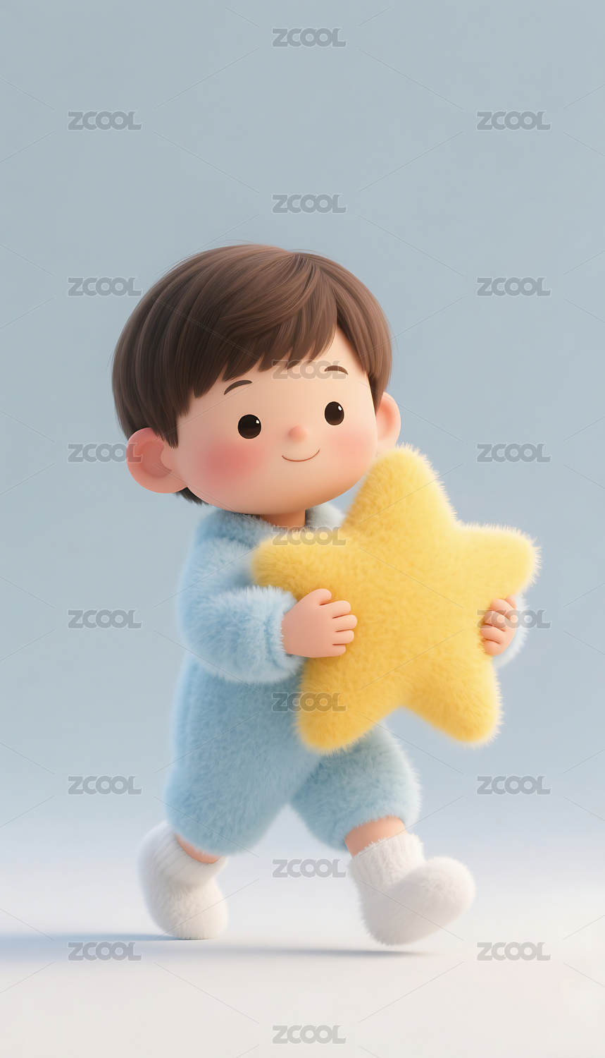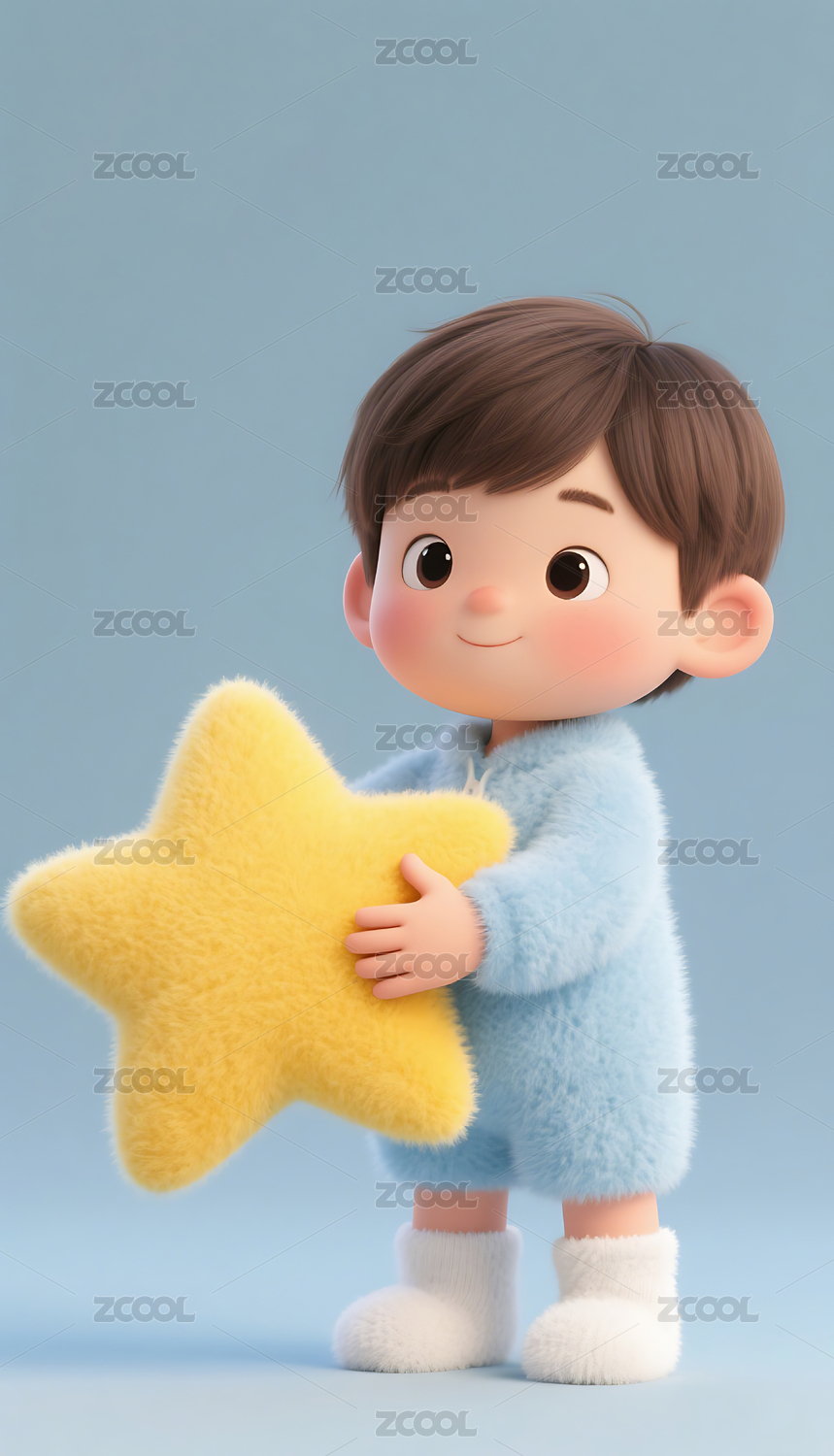 3D羊毛毡毛绒绒风格小男孩抱着星星模型
