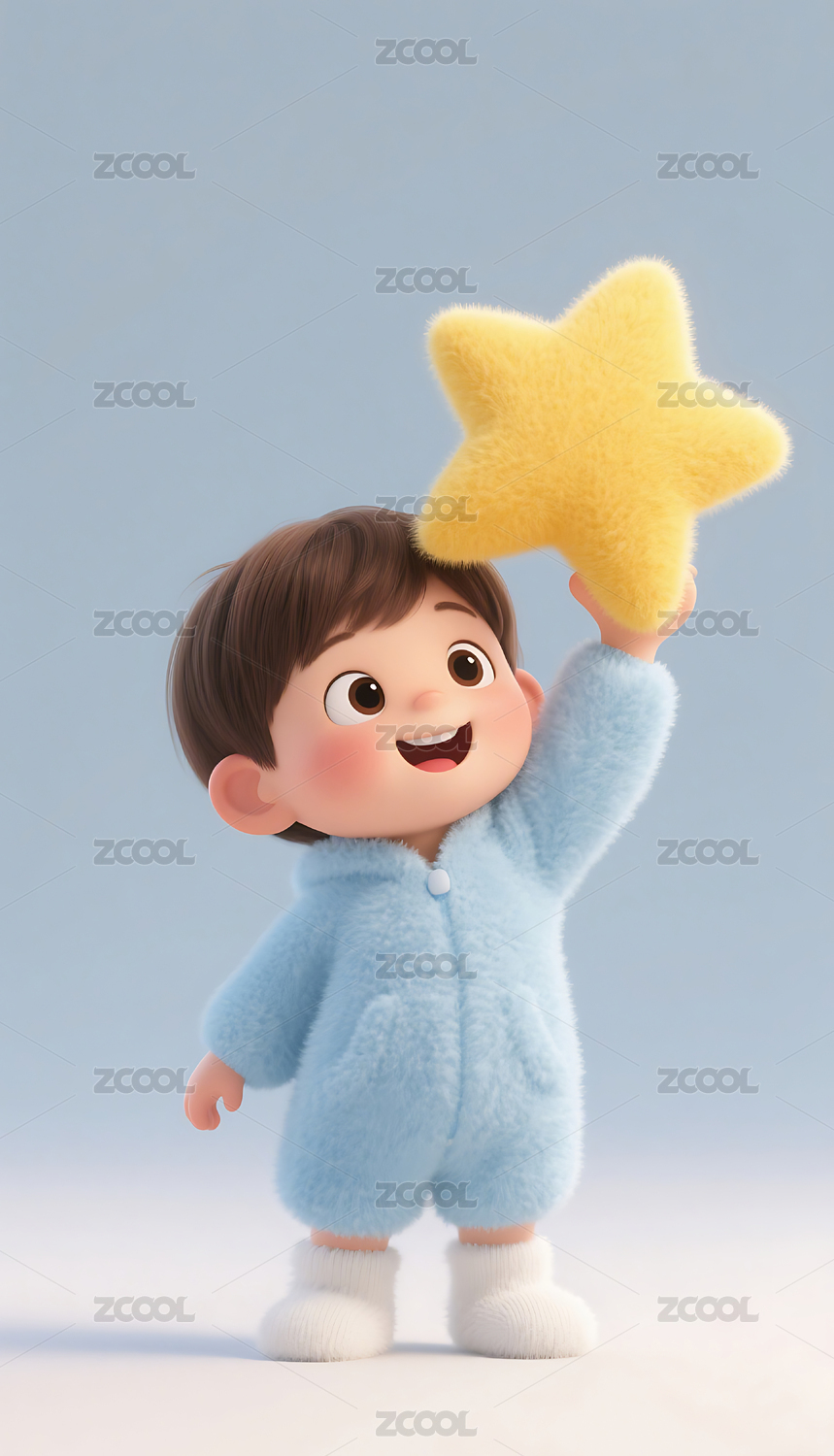 3D,羊毛毡,毛绒绒,毛茸茸,可爱,卡通,婴儿,插画,星星,五角星