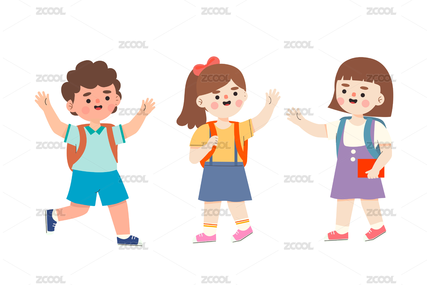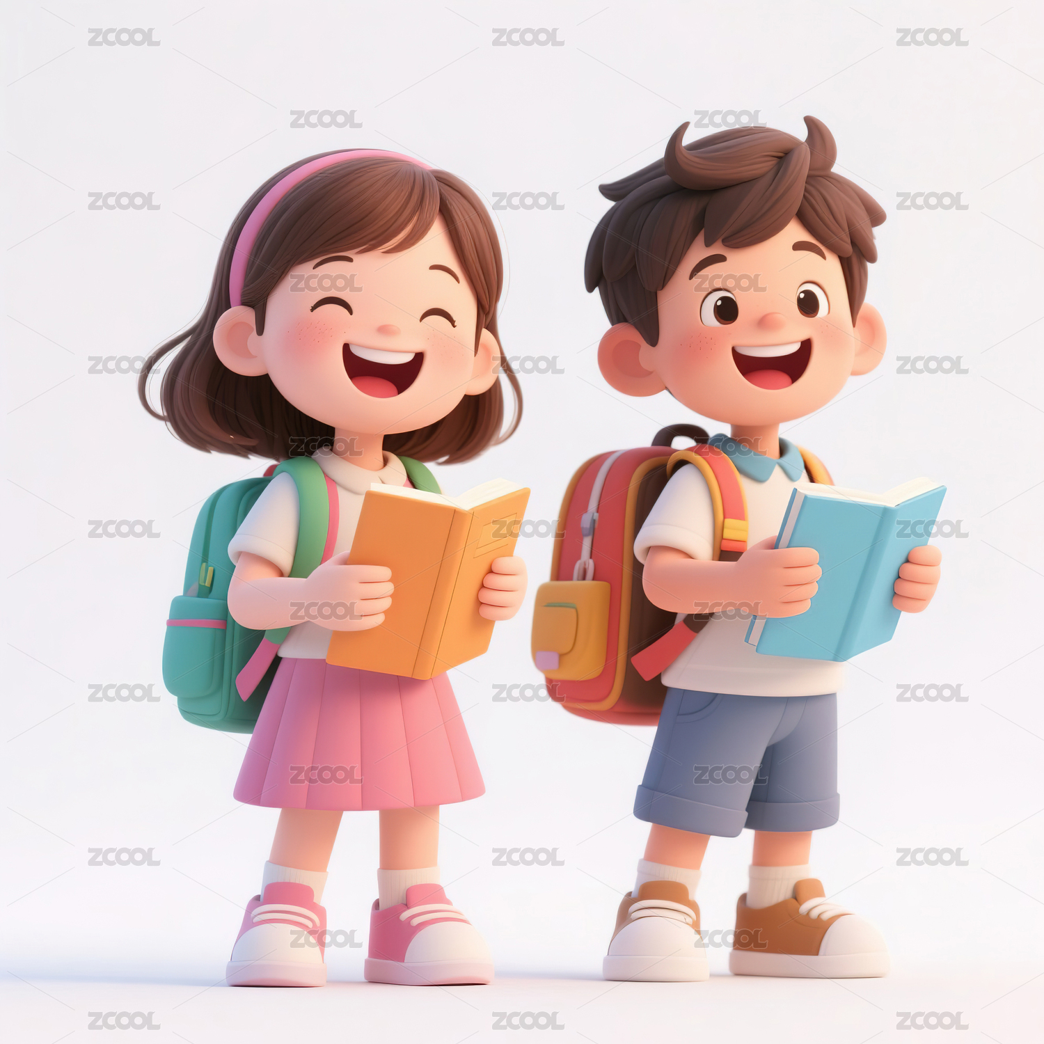 女孩,男孩,开学,开心,学生,男生,素材,平面,纸飞机,书包
