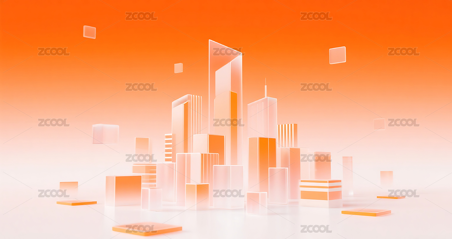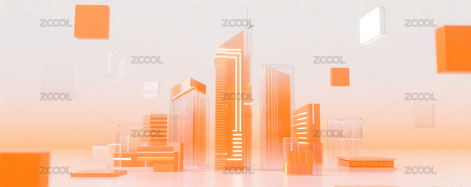 橙色商务科技未来玻璃质感图形设计城市建筑