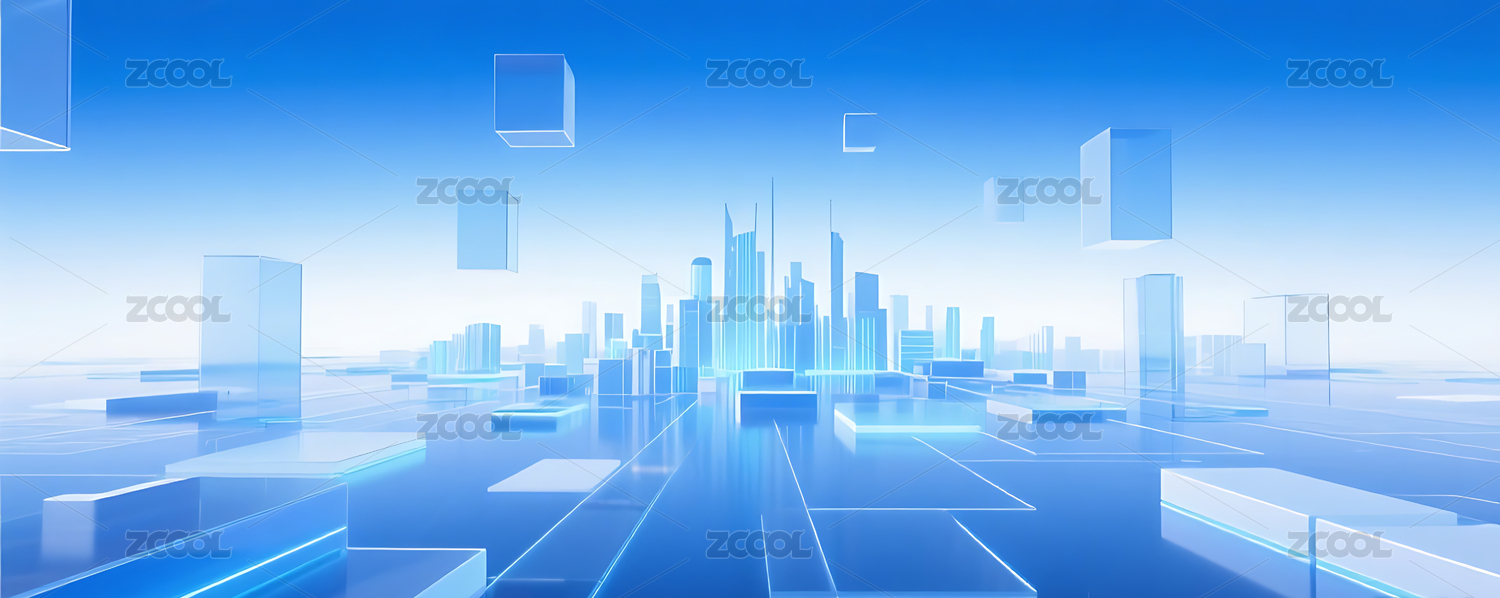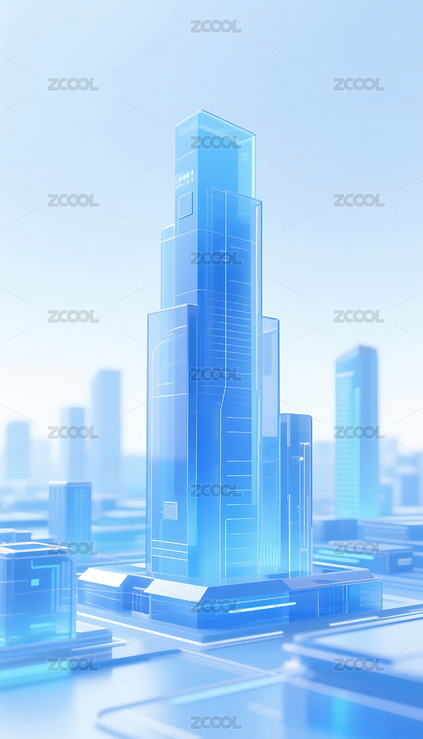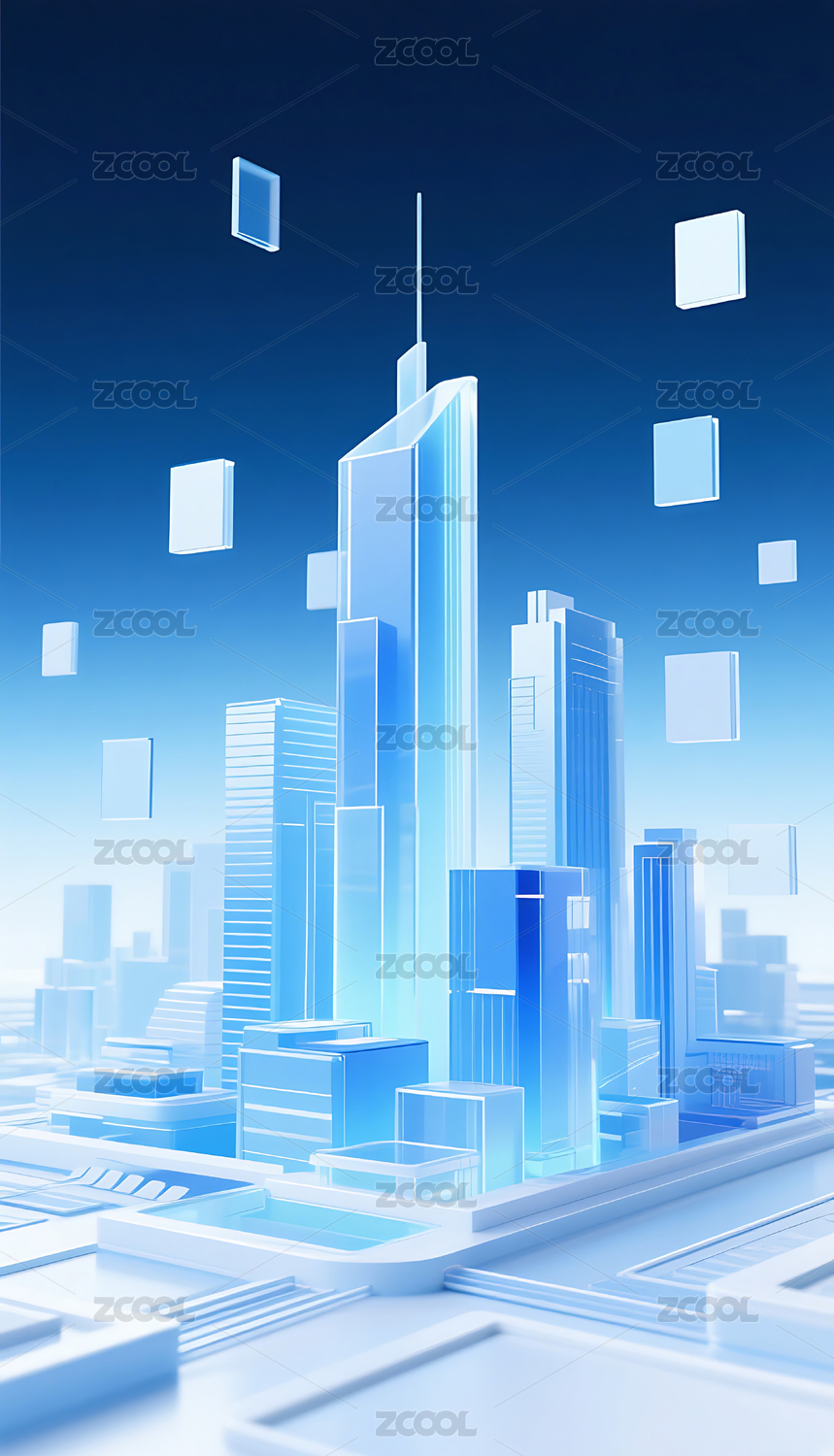 蓝色商务科技未来玻璃质感图形设计城市建筑