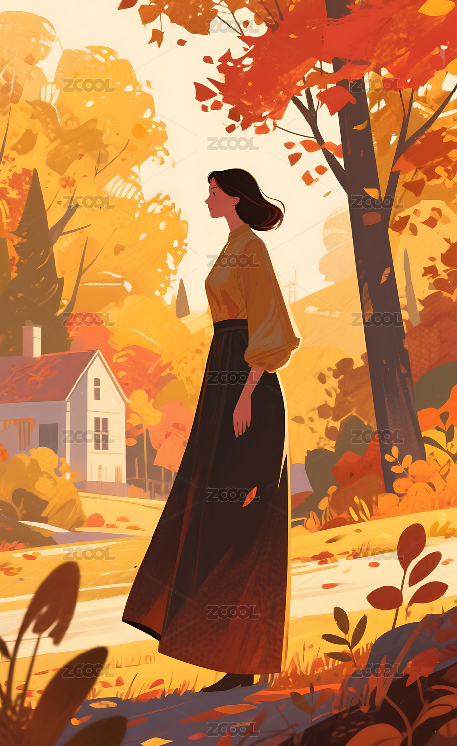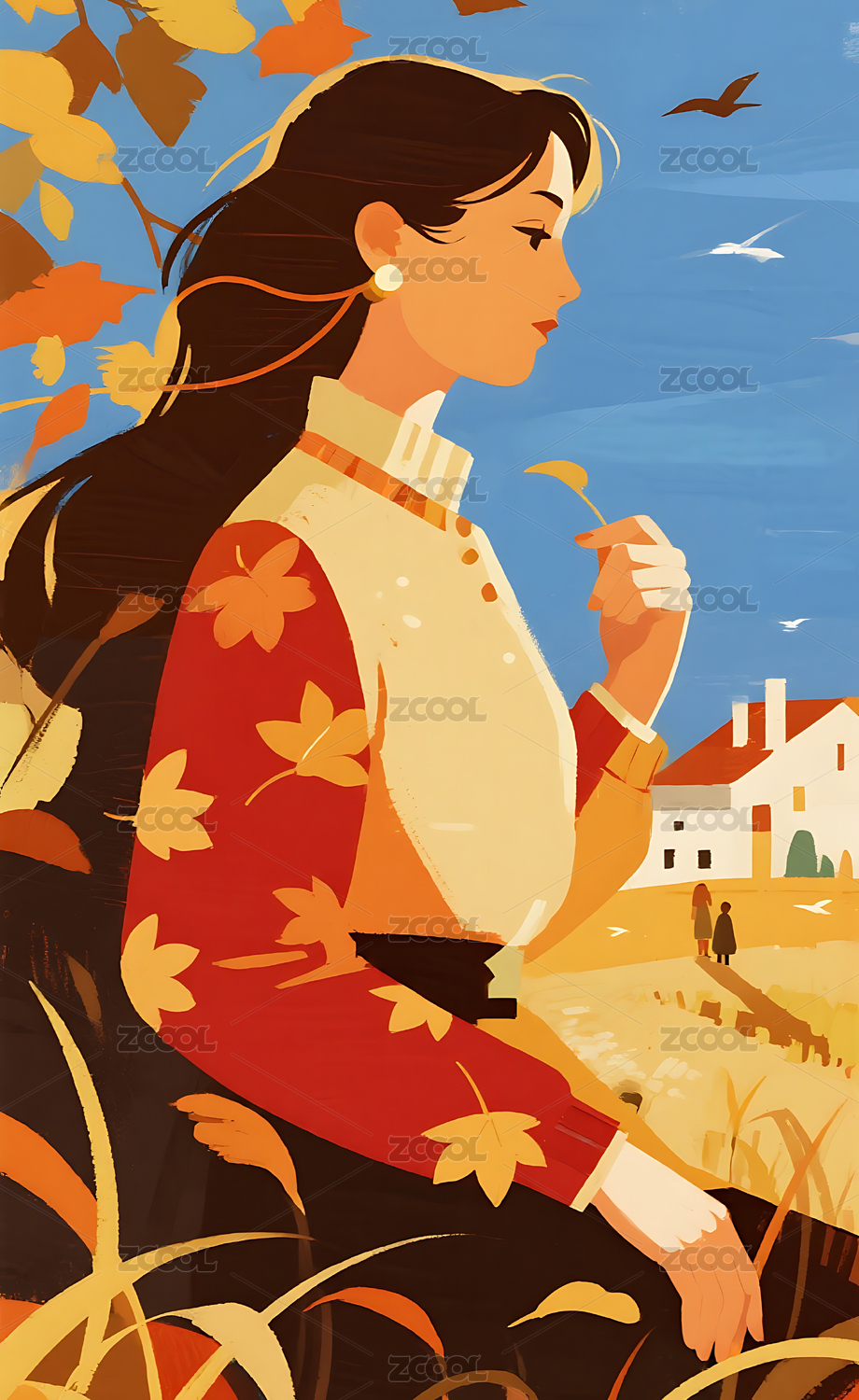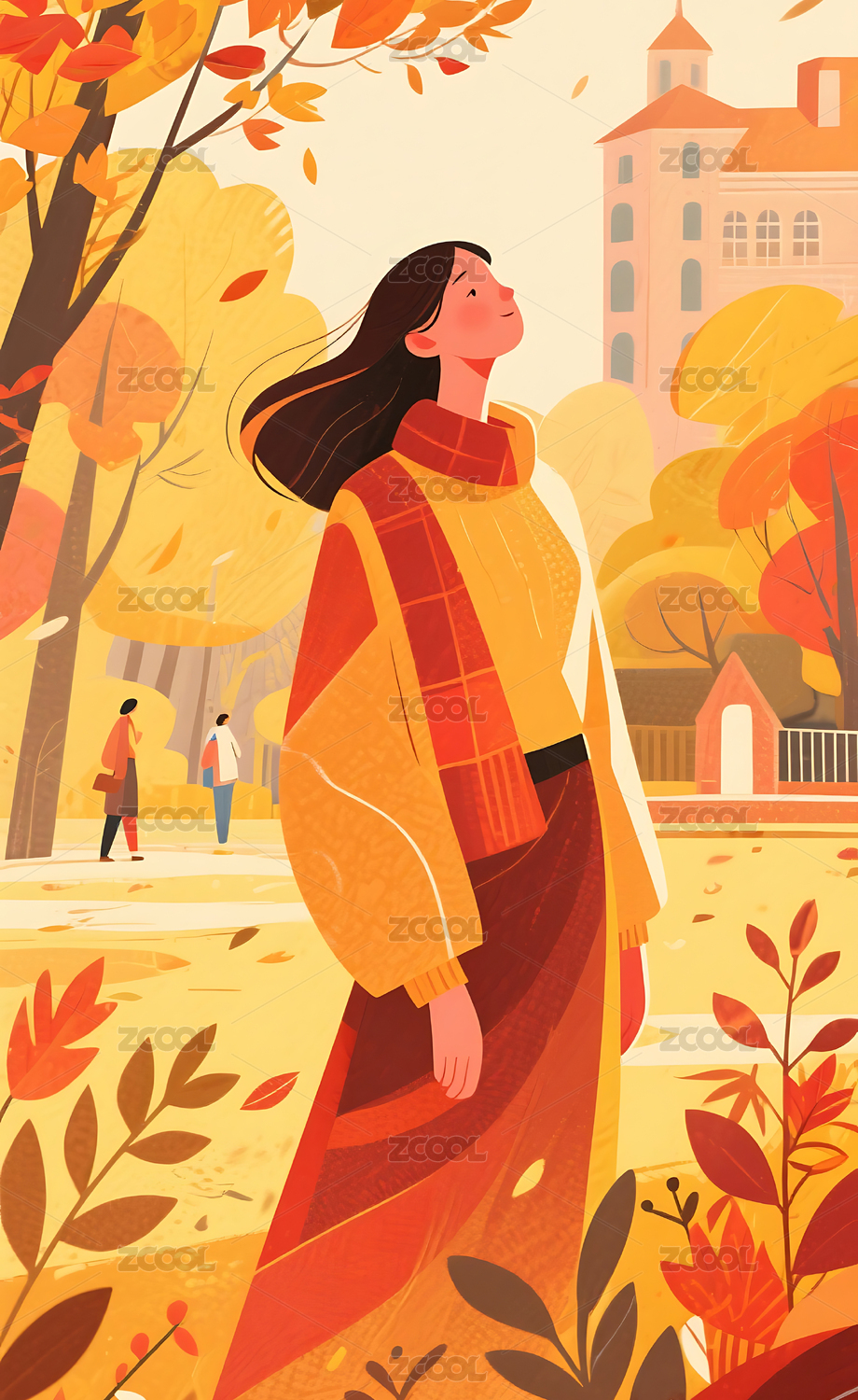 秋日人物插画