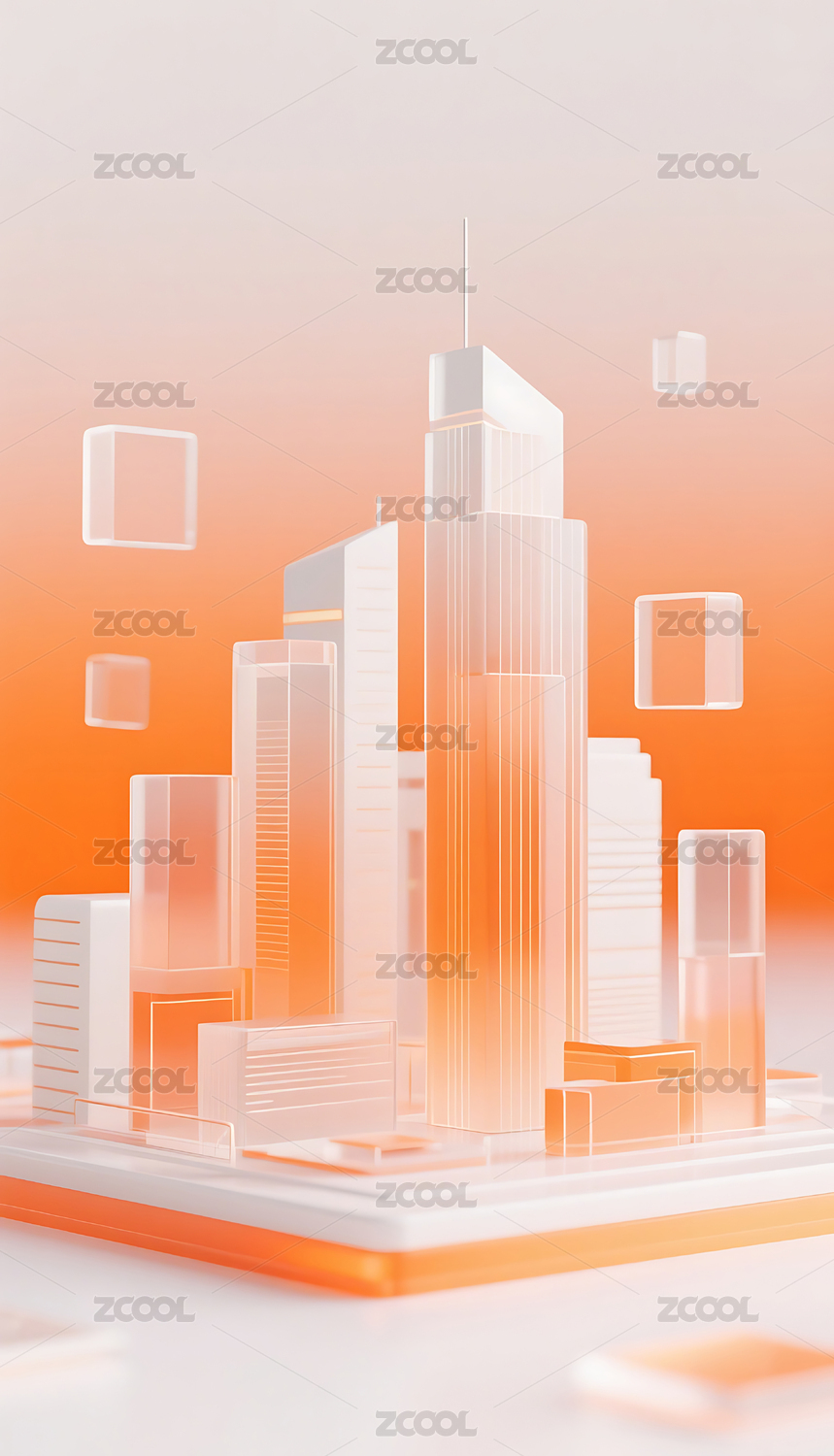 橙色商务科技未来玻璃质感图形设计城市建筑