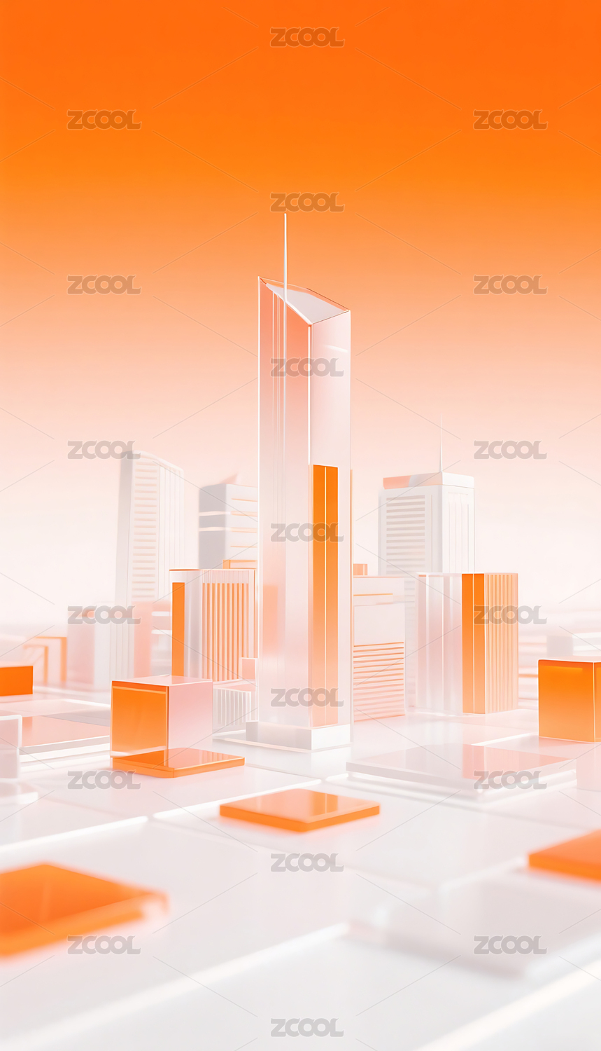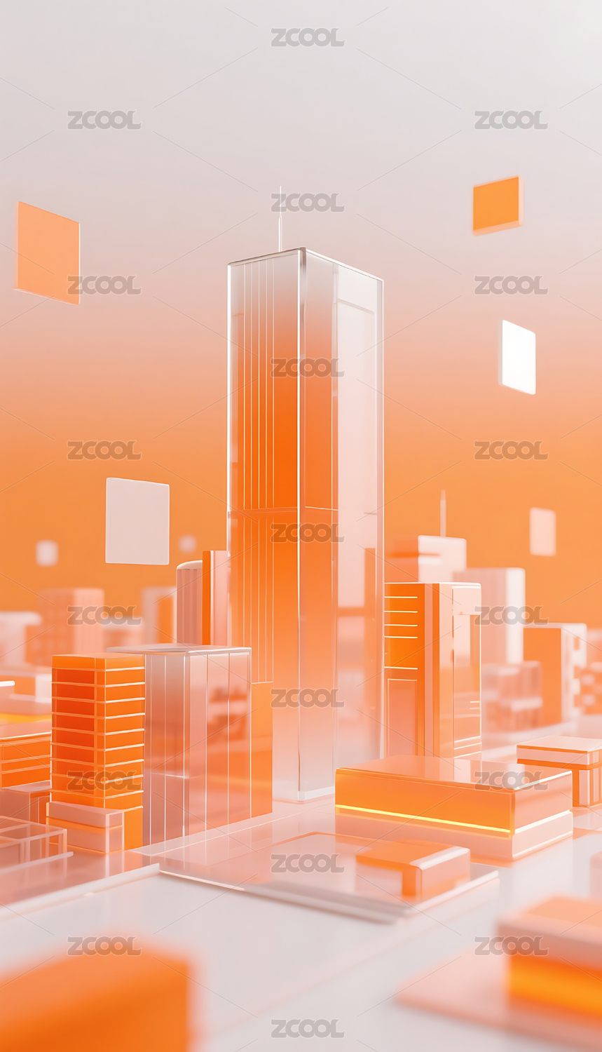 橙色商务科技未来玻璃质感图形设计城市建筑
