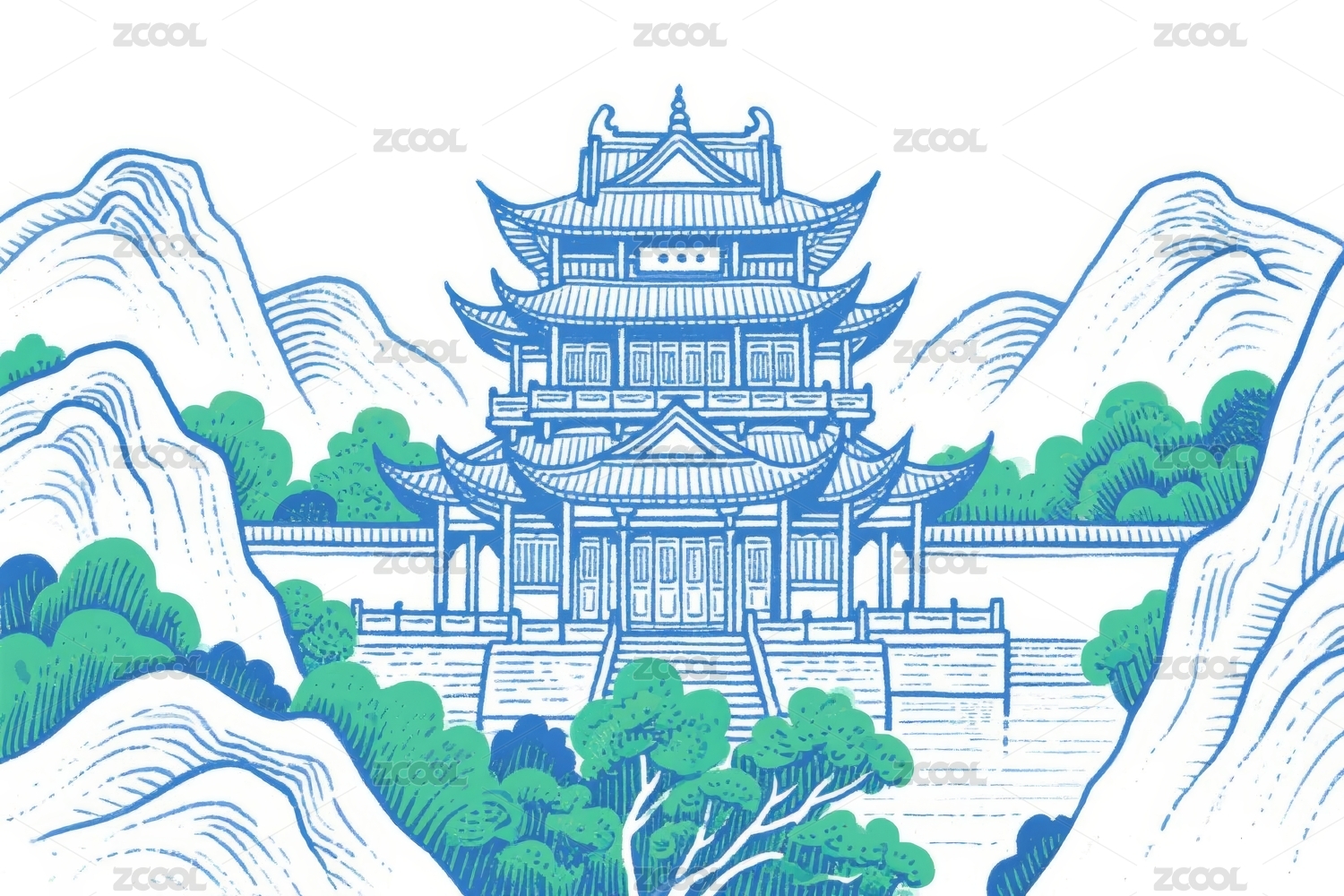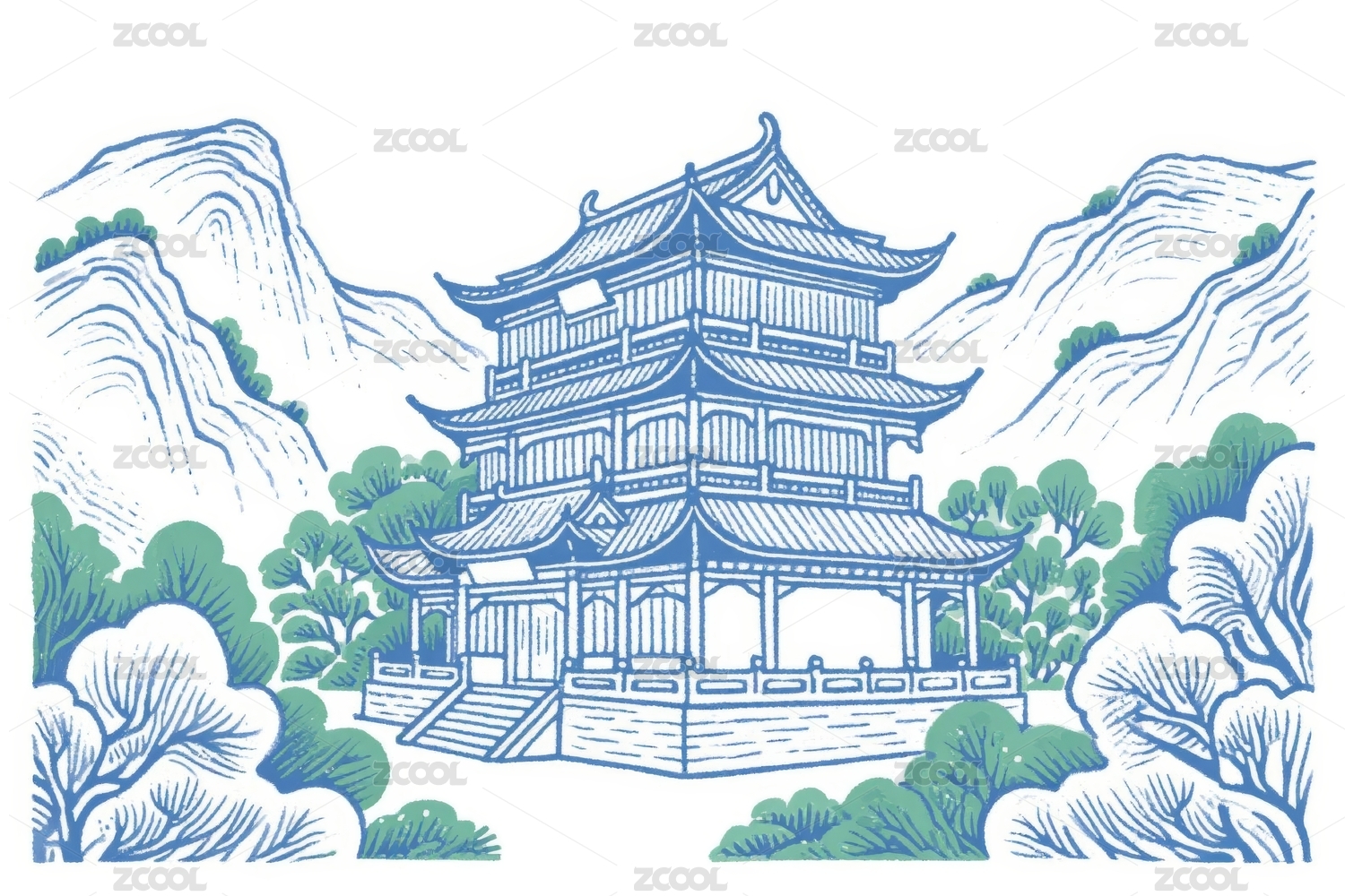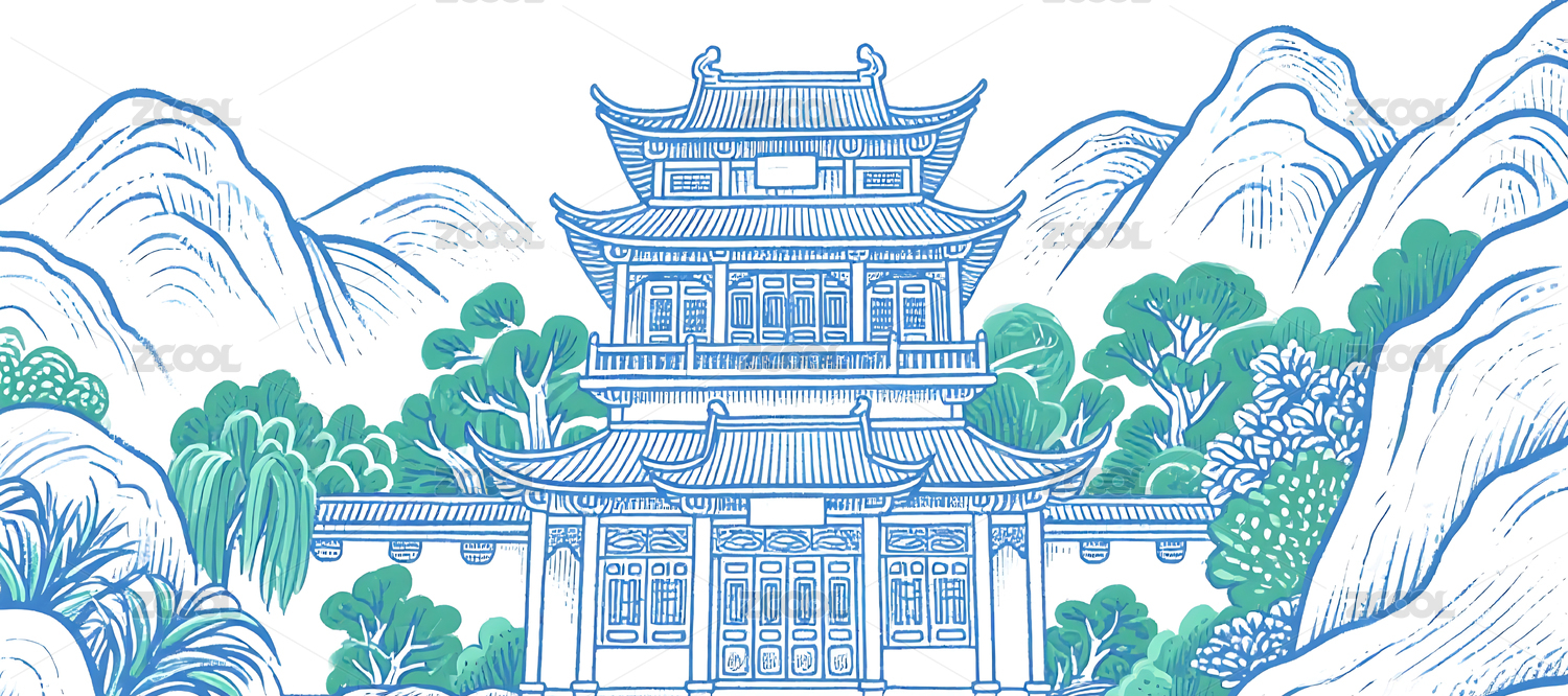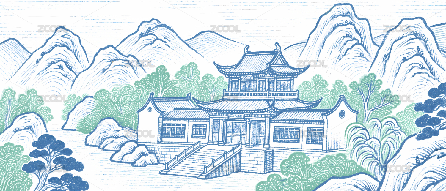中式山水建筑装饰图案