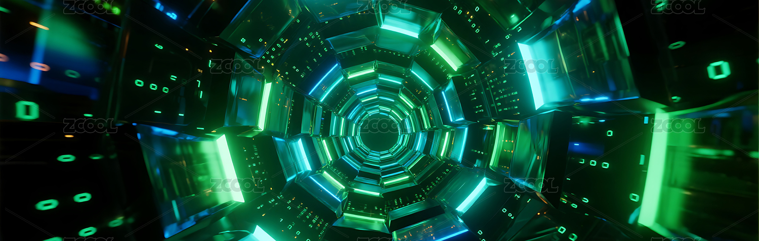 玻璃质感的立体方块构成数据隧道漩涡