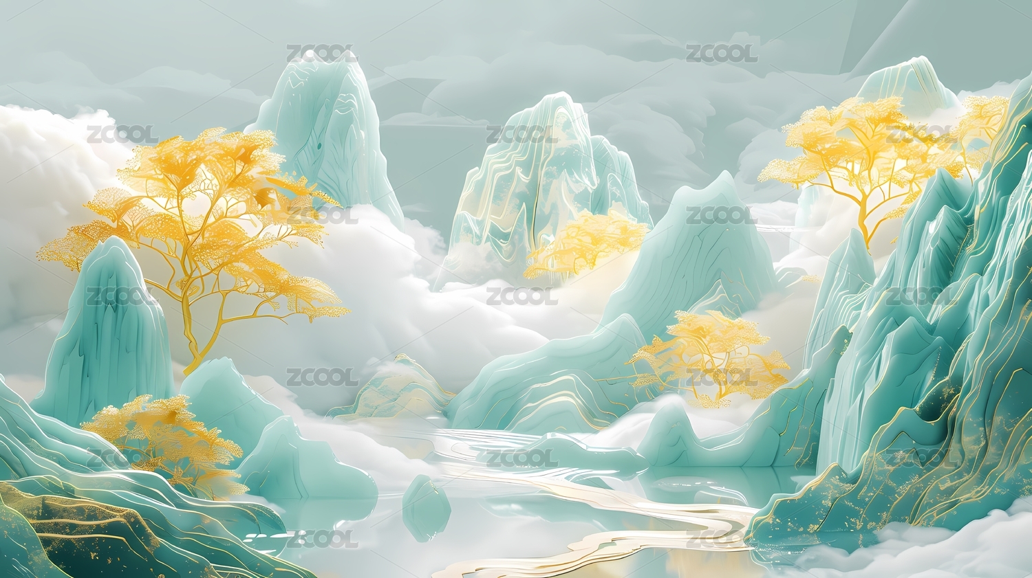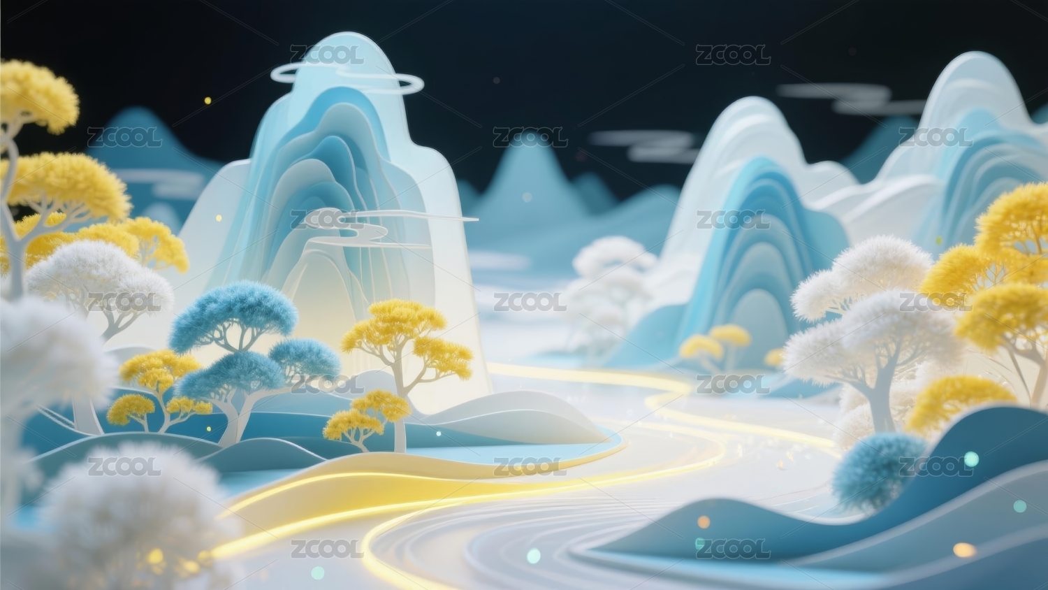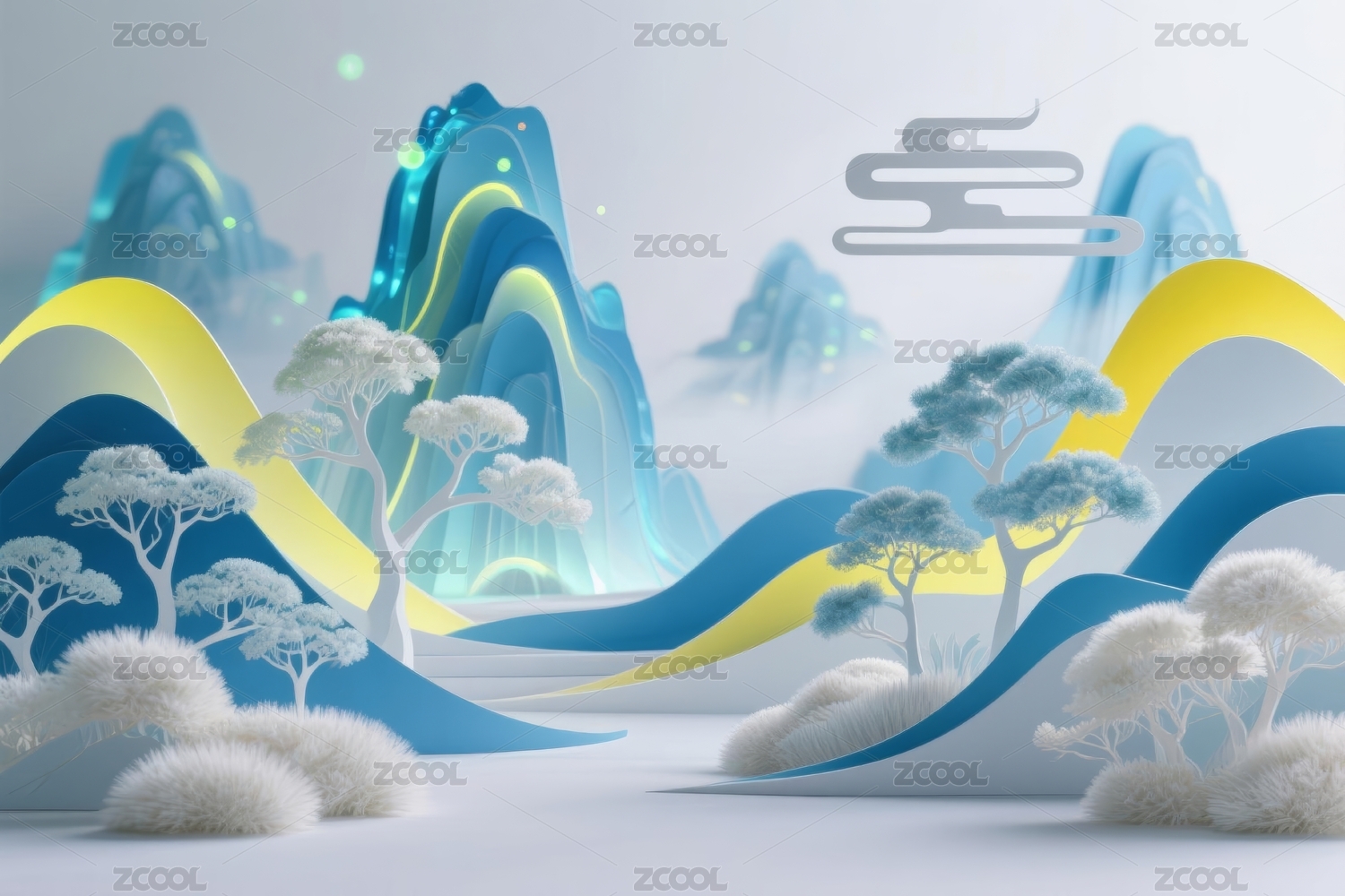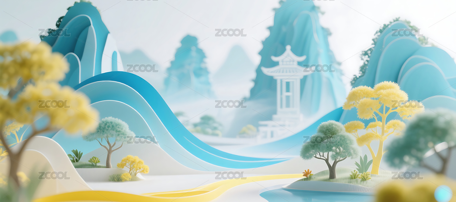 背景,插画,中式,超现实,柔美,新中式,立体,山水,极简,毛绒