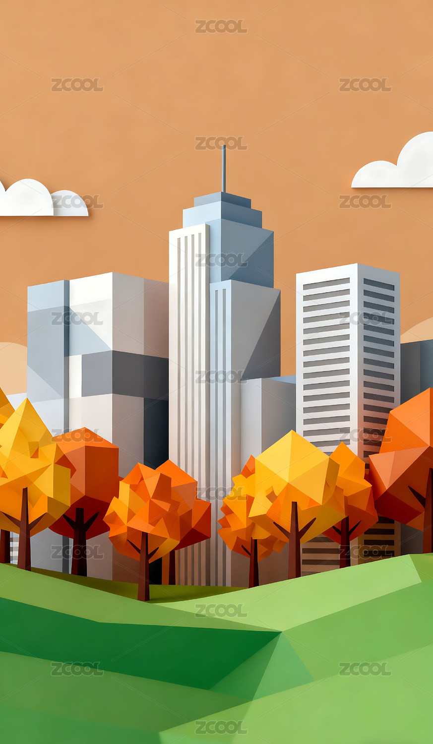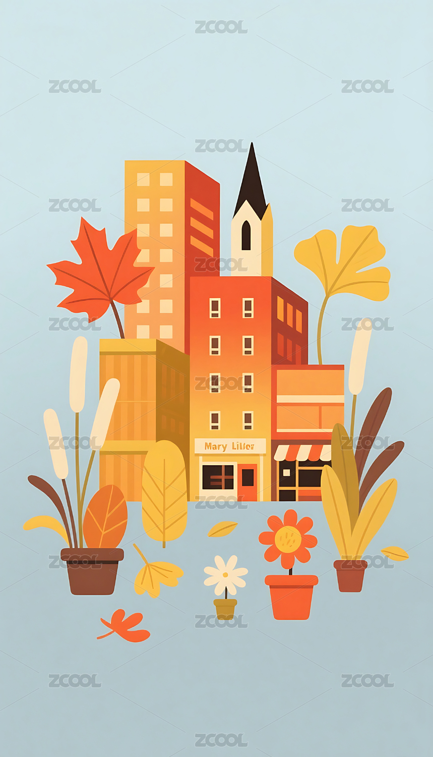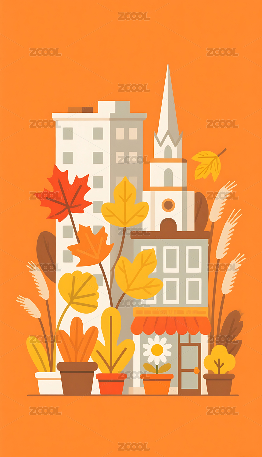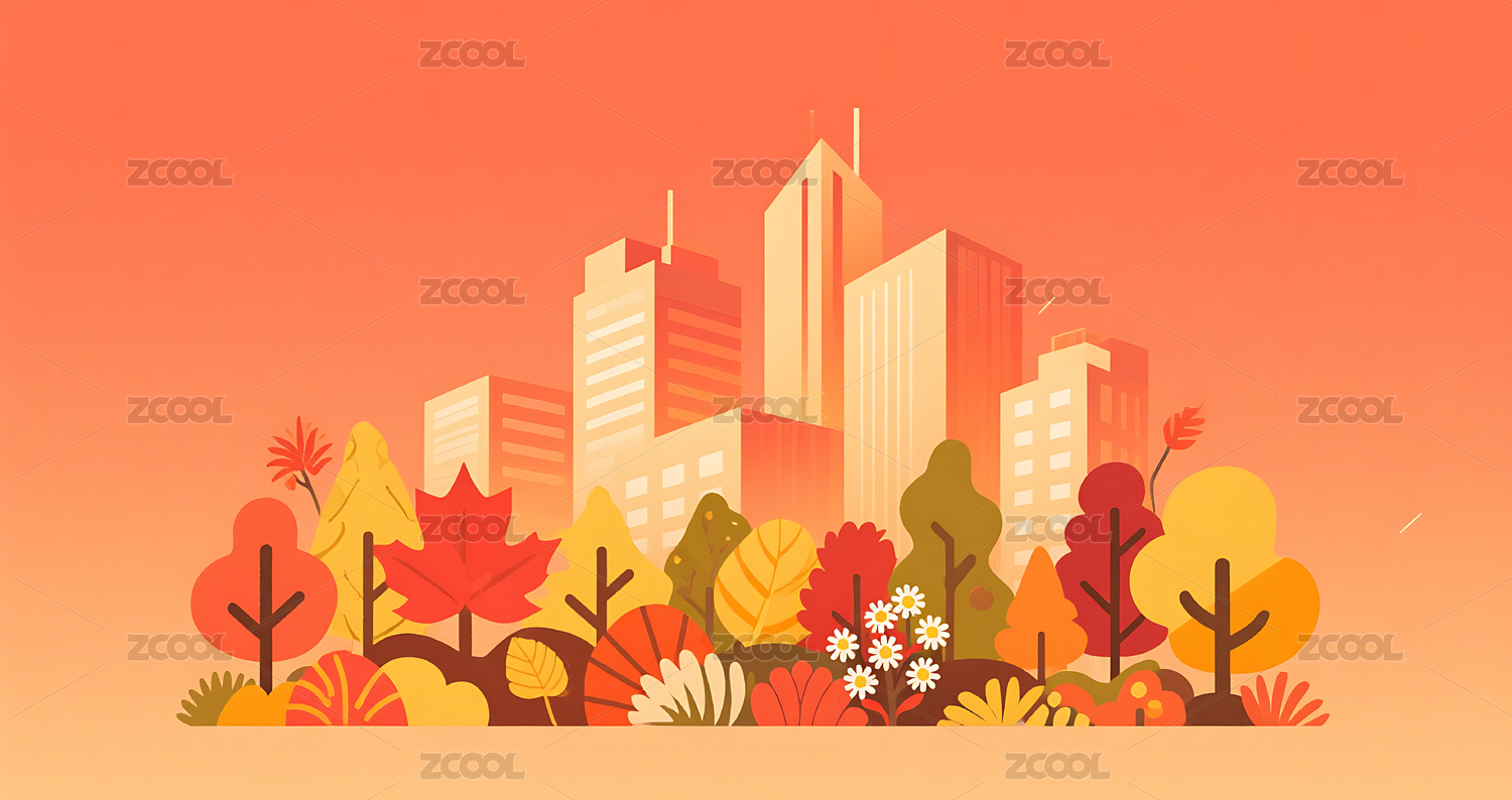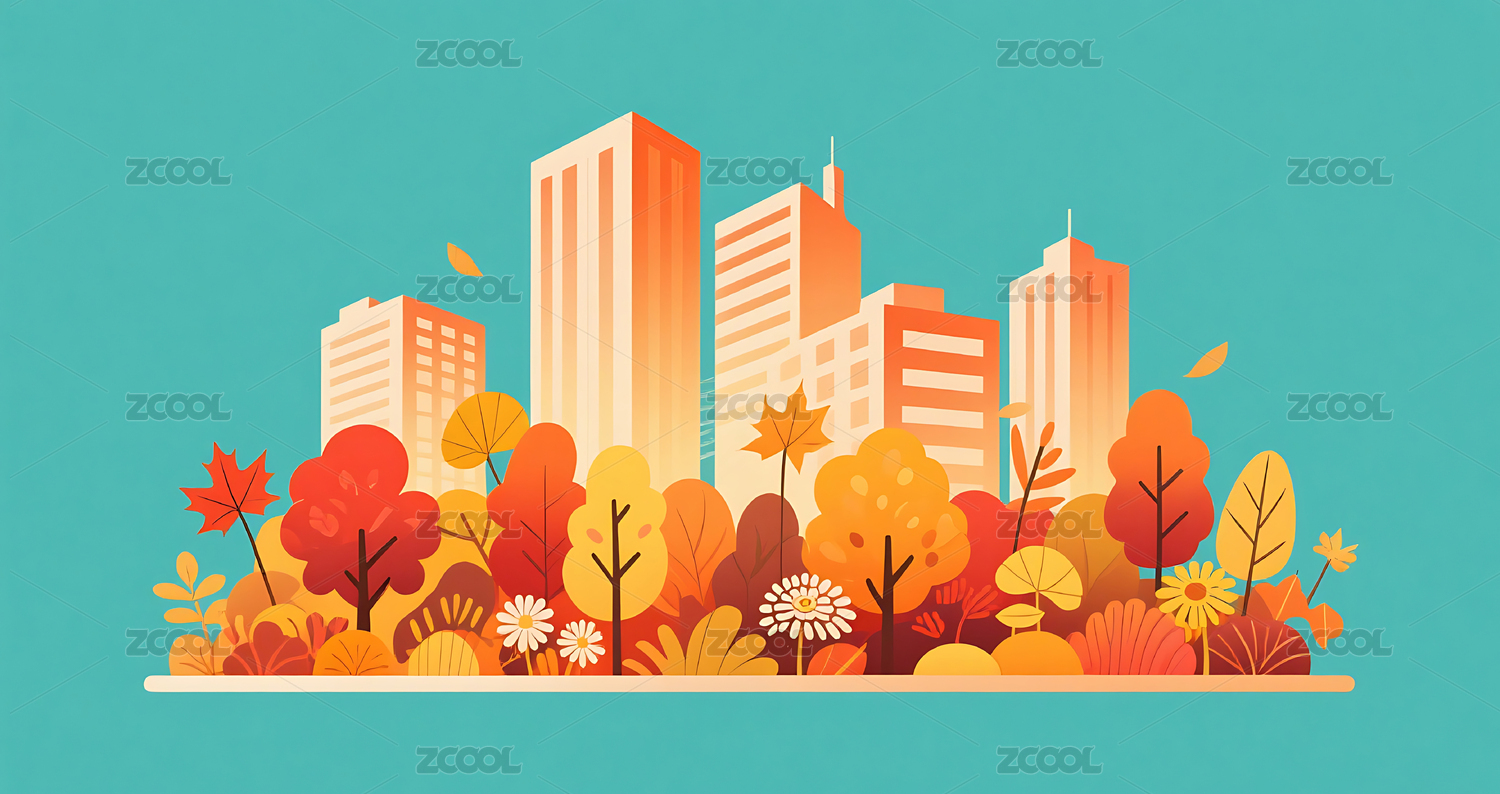 植物,城市,建筑,插画,扁平风格,平面,天空,秋天,秋季,节气