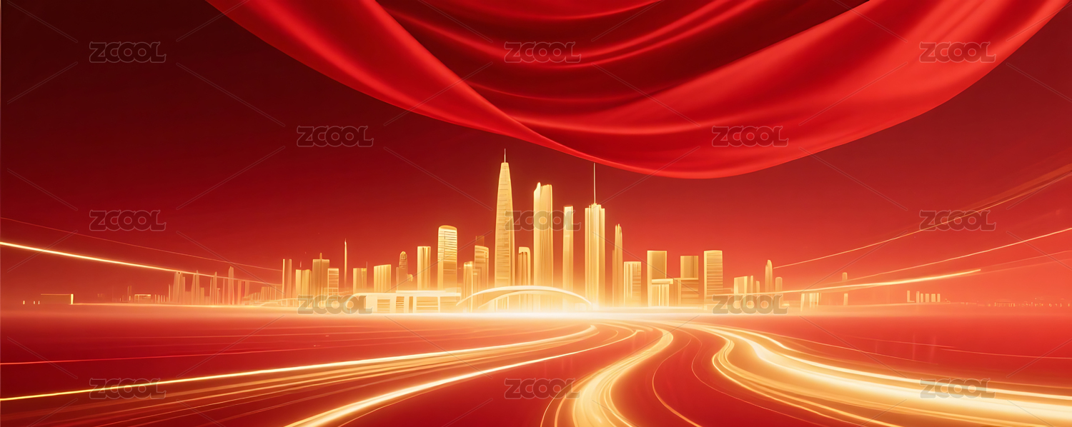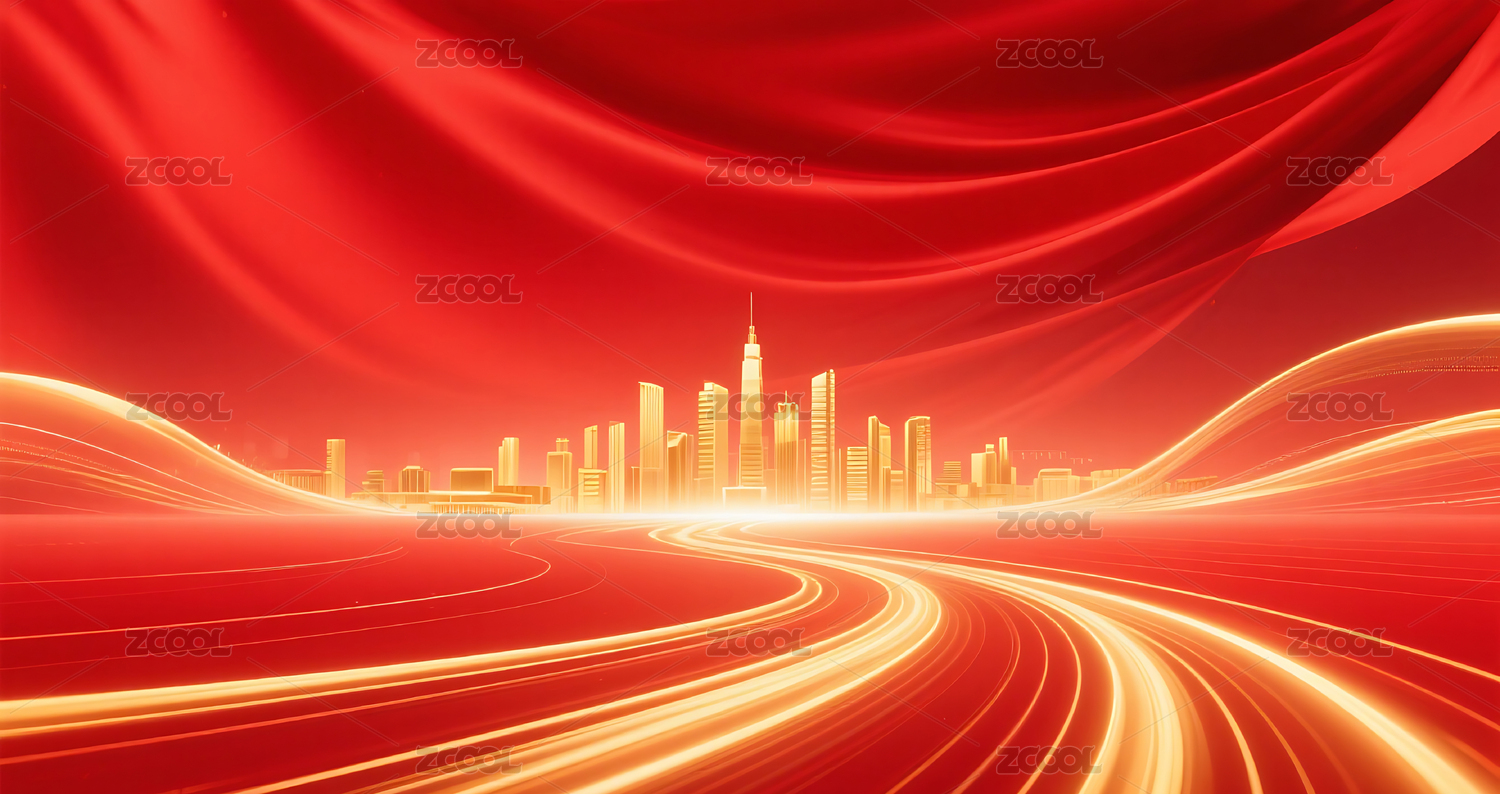 红色,金色,流动,城市,建筑,商务,科技,绸缎,丝绸,光效
