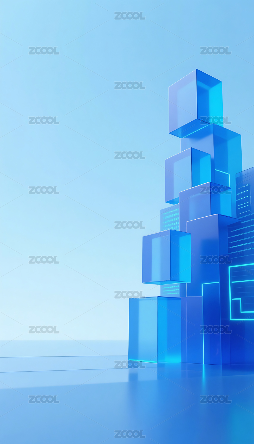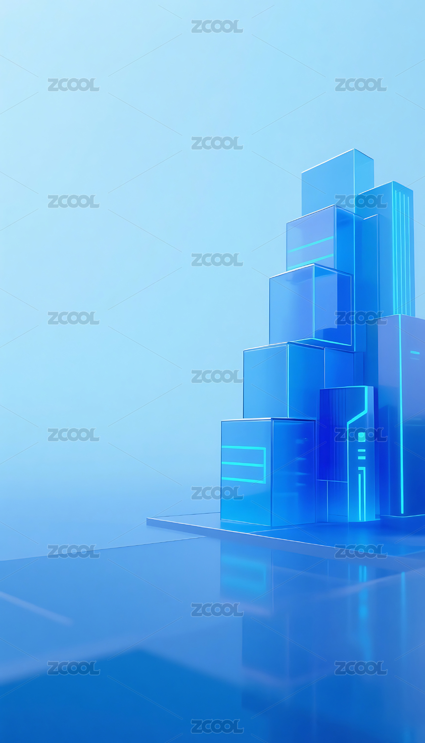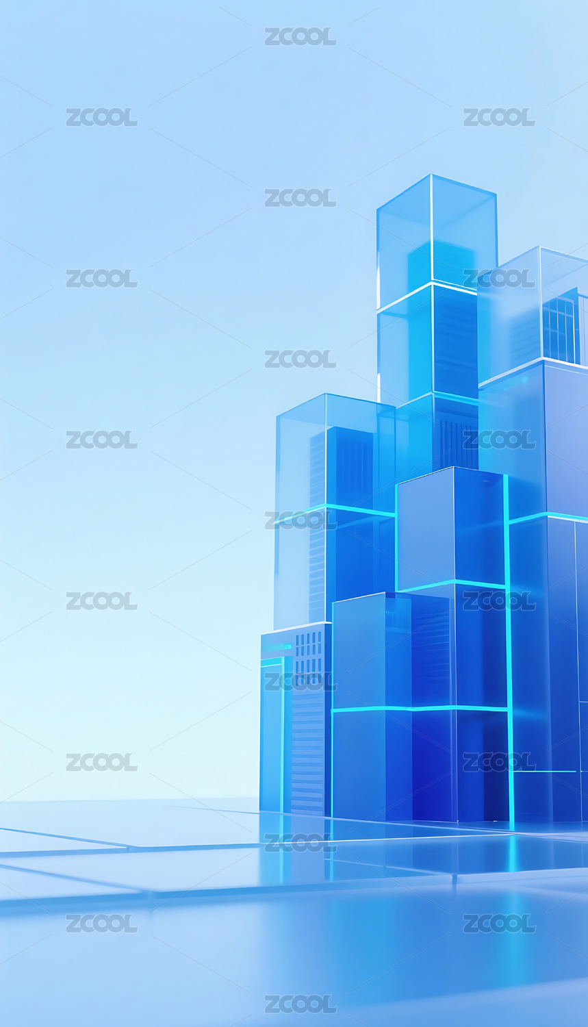 蓝色科技几何方块玻璃质感城市建筑