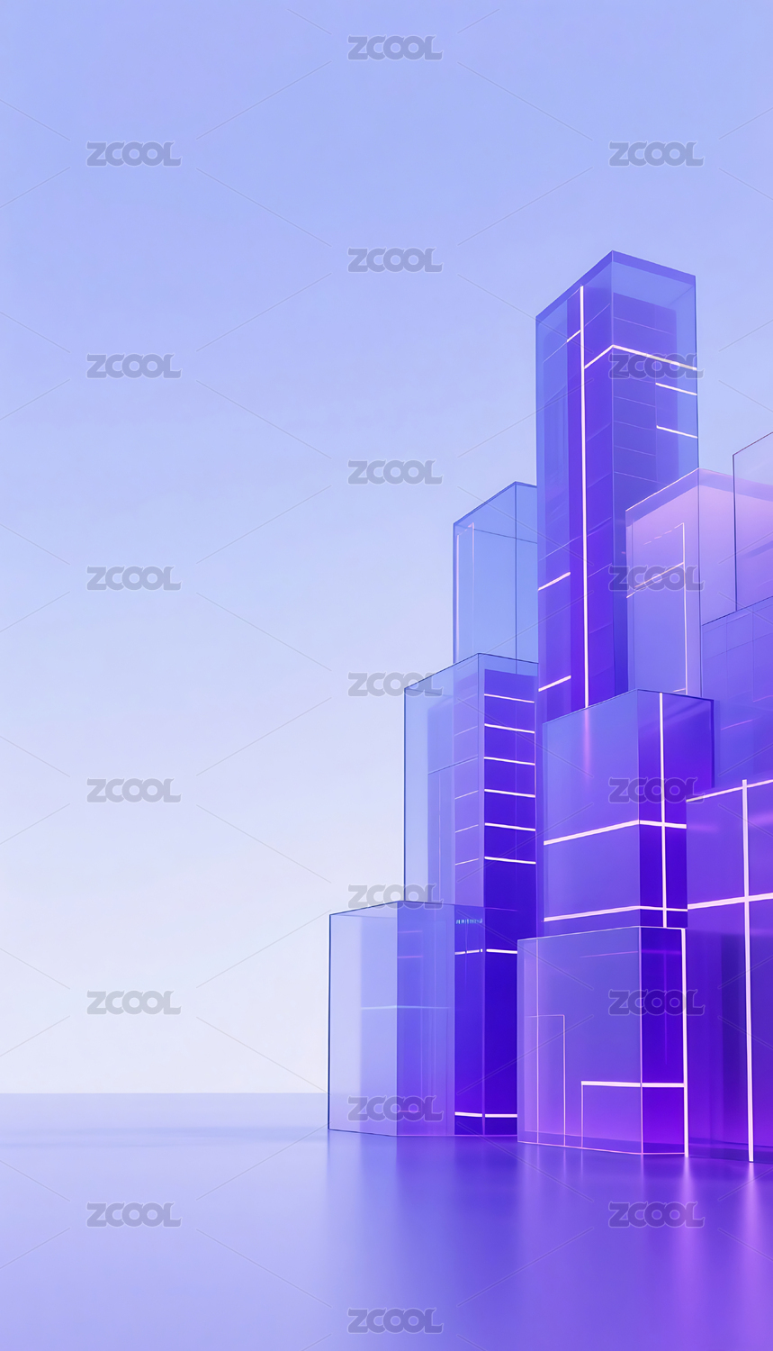 紫色科技几何方块玻璃质感城市建筑
